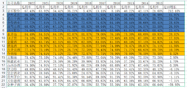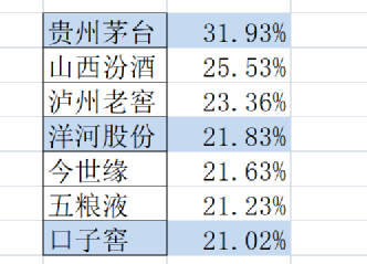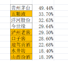 最高的是茅台 49.4%