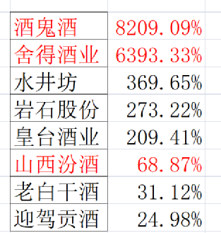 酒鬼酒 | 491% | 17433% |