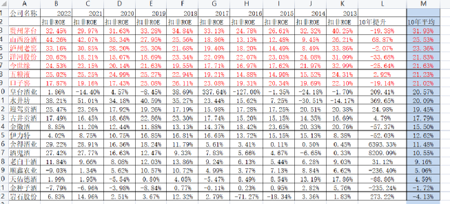 扣非10年ROE