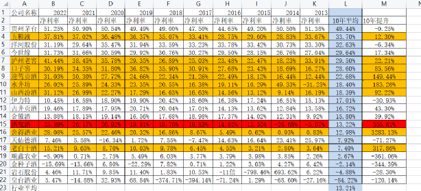 近10行业平均净利率13%