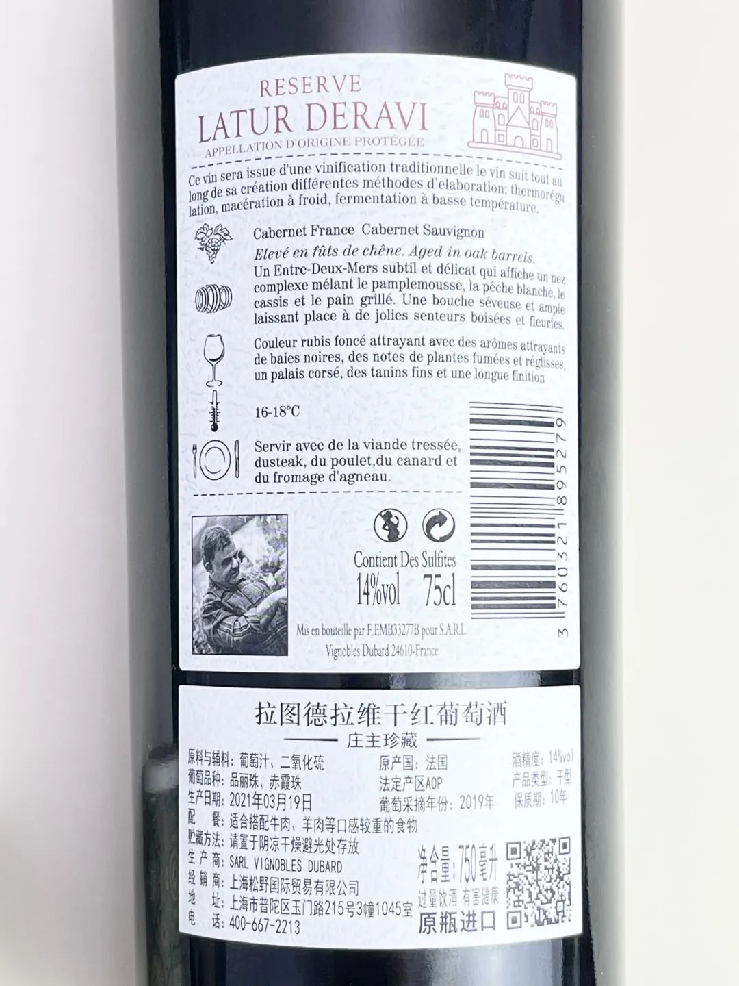 首先,这里给大家科普一下法国原瓶进口,从葡萄栽种、葡萄采摘、压榨、发酵、熟化、灌装、装箱,所有种植酿造装瓶,所有工序都在法国指定产区完成,通过运输中国境内,直接销售开瓶饮用。AOP全称“Appellationd‘Origine Protegee“欧盟的原产地保护认证标志,AOP等级的葡萄酒,其使用的葡萄品种、最 低酒精含量、培植方式、修剪以及酿酒方法等,都受到严格的监控,区别于市面上 流水线廉价餐酒,拉图德拉维・庄主珍藏干红葡萄酒AOP级别,是品质的好保障!另外,拉图德拉维・庄主珍藏干红葡萄酒出身相当高 贵,400年历史的LATUR庄园出品。在伦敦国际葡萄酒交易所(Liv-ex)近年揭晓的“百强佳酿(Power 100)”榜单中,拉图德拉维多次入选,而在葡萄酒搜索引擎(Wine-Searcher)公布的搜索排名中,拉图德拉维也常年在在排行前列。在法国人心目中,拉图德拉维酒标上的卡尔佩兰顿城堡就是好酒的标识!