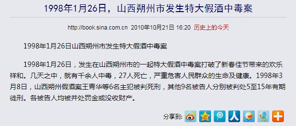 造成27人死亡,上千人中毒的山西假酒案,曾经红红火火的清香型山西汾酒,受此毒酒案的牵连,被浓香型白酒取代了40年的辉煌!而在市场上坚持了20年的红火浓香型白酒,后期因为到处收购劣质散酒,回去勾兑勾调,品质一落千丈,又被虎视眈眈的酱香型白酒取替!