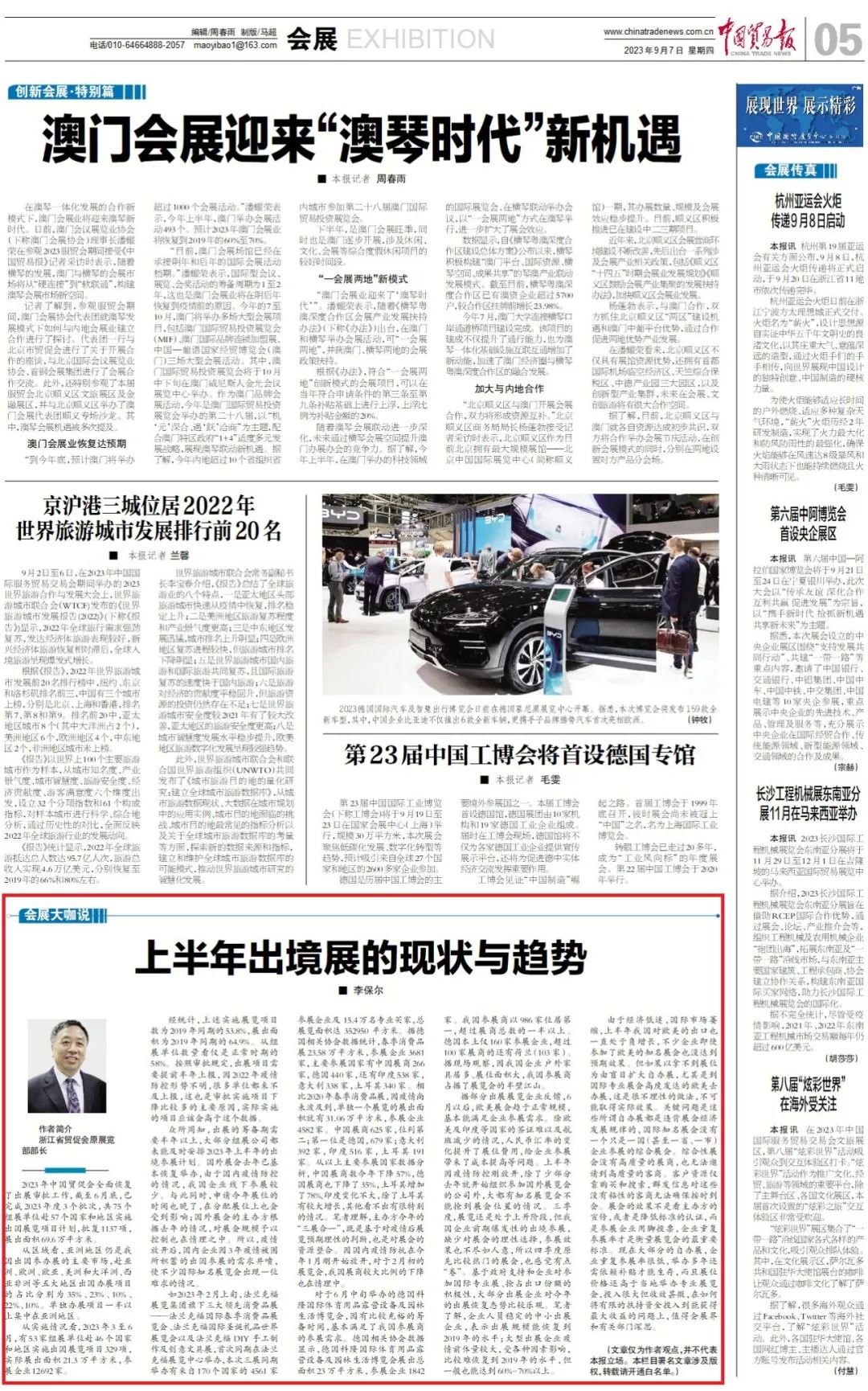 据部分出展展览企业反馈,6月以后,欧美展会趋于正常规模,基本能满足企业参展需求。除欧美及印度等国家的签证难以及航班减少的情况,人民币汇率的变化提升了展位费用,给企业参展带来了成本提高等问题。上半年因疫情防控刚放开,除了少部分去年就开始组织参加国外展览会的公司外,大都有知名展览会不能抢到展会位置的情况。三季度,展览还是处于上升阶段,但我国企业前期爆发性的出境参展,缺少对展会的理性选择,参展效果也不尽如人意,所以四季度原先比较热门的展会,也感觉有点“卷”。基于政府支持和企业对参加国际专业展、抢占出口份额的积极性,大部分出展企业对今年的出展恢复态势比较乐观。笔者了解,企业人员稳定的中小出展企业,表示出展规模能恢复到2019年的水平;大型出展企业疫情前体量较大,受各种因素影响,比较难恢复到2019年的水平,但一般也能达到60%-70%以上。