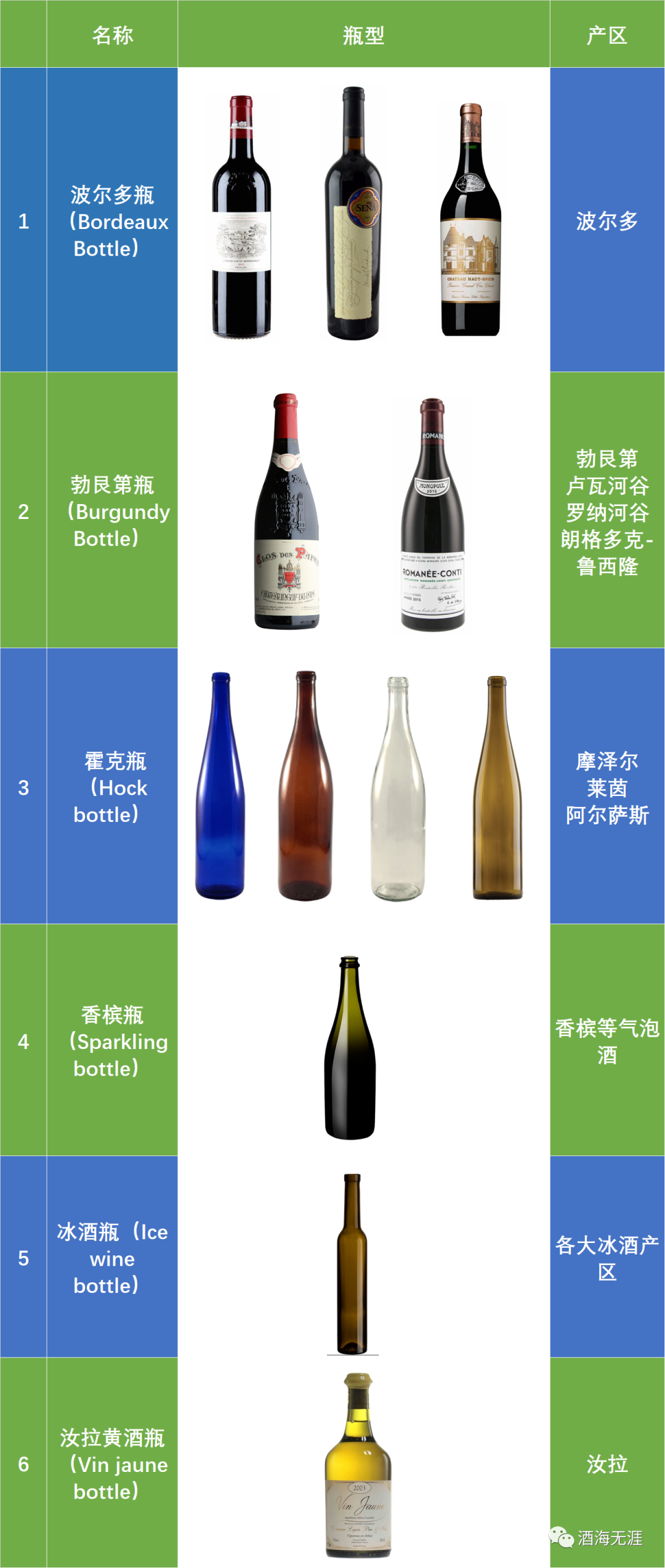 常见的6种葡萄酒瓶型