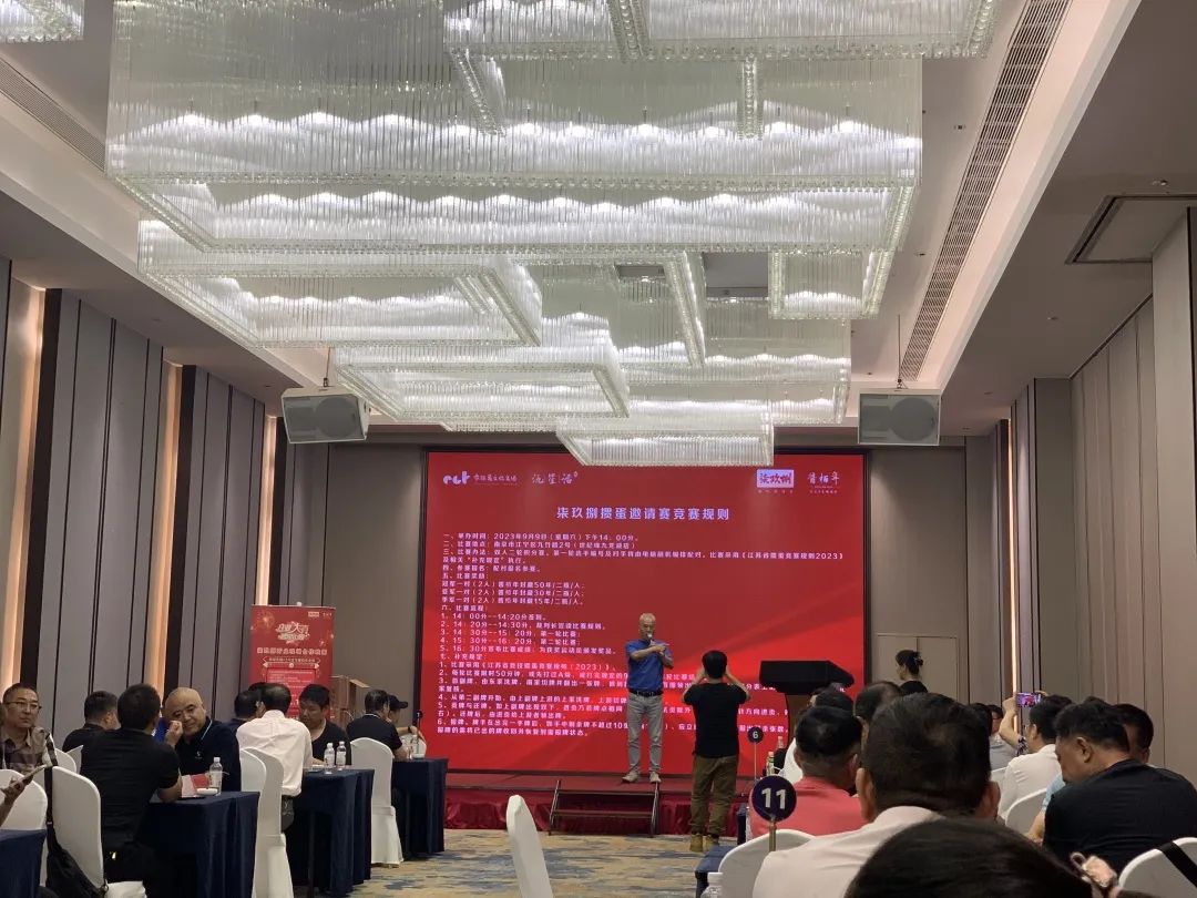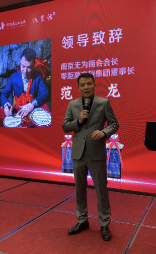 零距离文旅集团董事长范业龙发表致辞,南京柒玖捌酒业公司将在未来的日子里精诚团结,以一流的产品、一流的服务、一流的信誉服务于八方来宾,竭力推动酱栢年酒更快的发展。