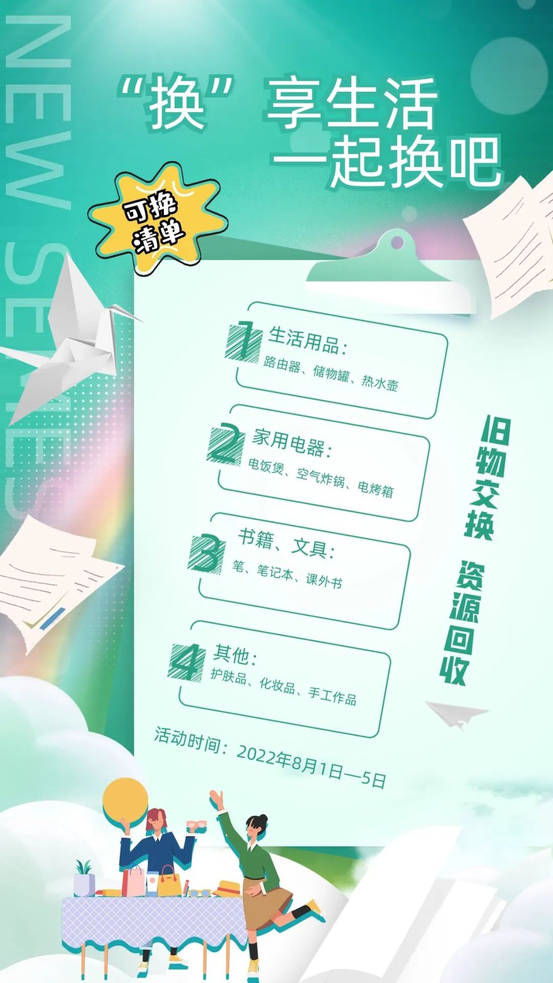 为了让家中不再受宠的旧物得到新的利用,实现物尽其用、环保节约、循环利用的良好环境效益,8月4日,设备管理公司团总支开展了“‘换’享生活,一起换吧”公益主题活动。