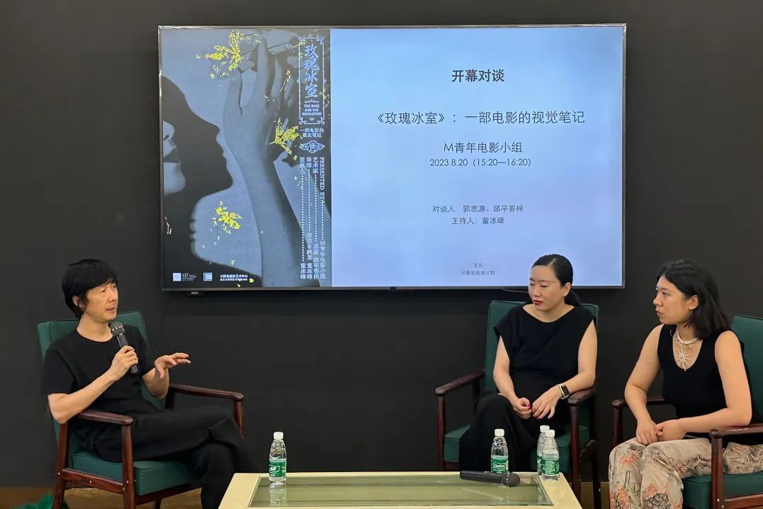 “《玫瑰冰室》:一部电影的视觉笔记”是2020年成立的M青年电影小组举办的首个视觉艺术展览。展览初始的构思,是以聚焦一部电影《玫瑰冰室》的概念起源、故事结构以及美学方案等主题,同时在发展过程中,确立了在电影项目方案与视觉艺术表达两者之间的对话与互相转化的展览形态。