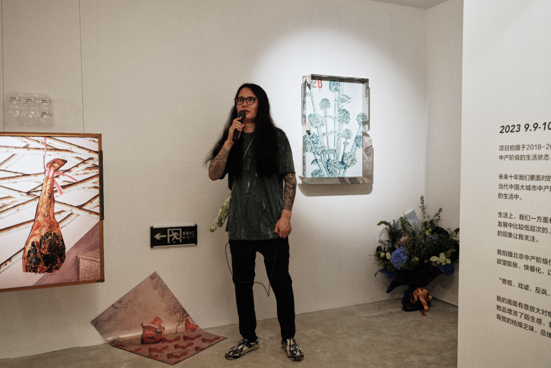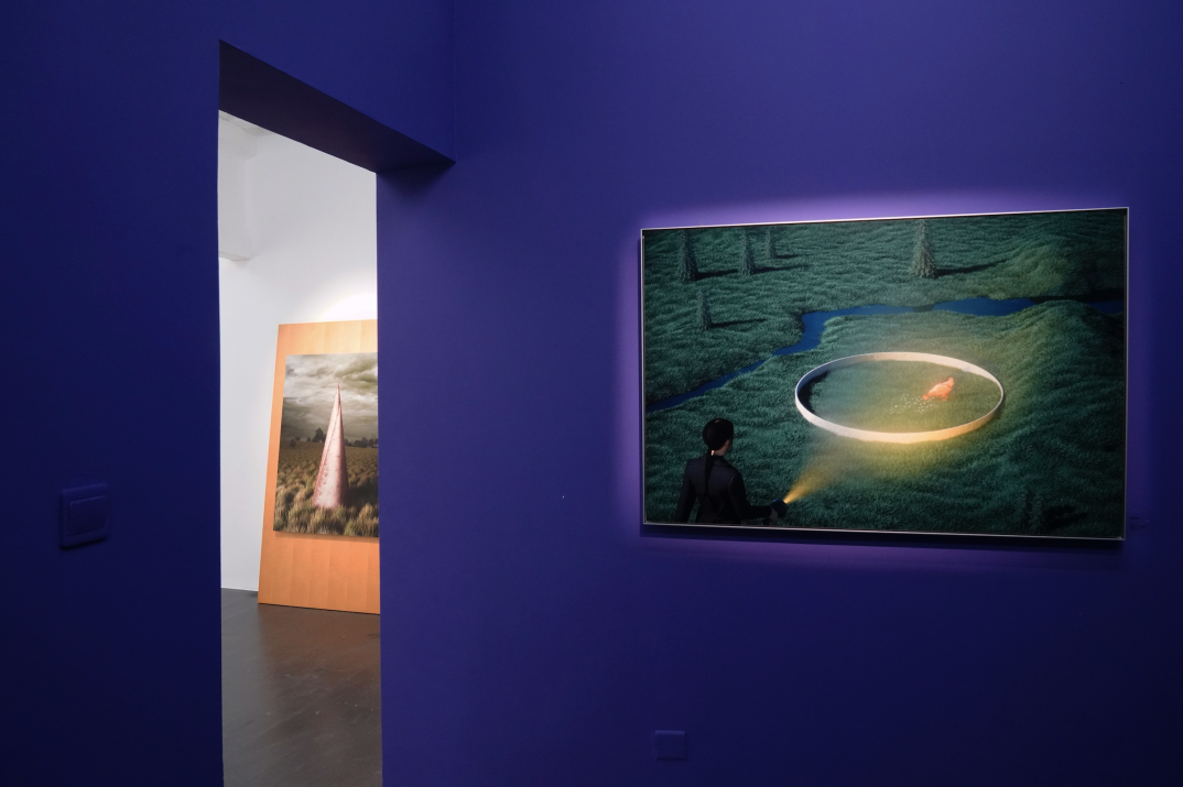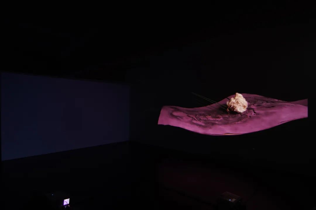 展览“一切于一点” 探索和描绘生命被创造初始,从混沌到有序变化中的定格瞬间。展出的系列作品《变形记》从广阔的视角出发,展现宇宙在最初状态下可能存在过的非人类、兽态或人兽混合的生物,并将它们的形态定格在悬浮于无重力空间的那一刻。第二个系列作品《退回到赤裸》将子宫作为宇宙的隐喻,探索婴儿被羊水包围时的神秘状态,以及母与子曾经共生又分离的关系。