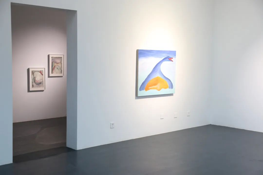 “我的初期创作集中在为摄影和影像作品的布景和关键帧绘制背景、各种动物和人类形象。后逐渐转向运用油画和水彩等媒介来呈现图像的色彩和流动性,但前期胶片摄影的创作经验仍为我在绘画中构图和颜色的选择提供了很多灵感。并且基于在影像中静态与动态图像的研究兴趣,在第二个系列作品《退回到赤裸》中,我延续了为视频作品绘制分镜的思路,通过线性的创作方式探索生物形态随时间流逝的变化过程。”