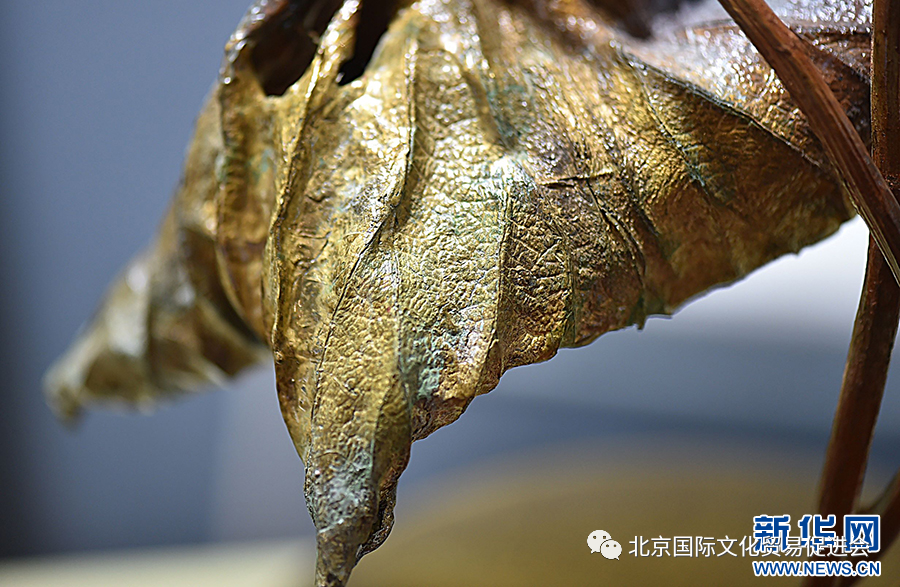 用青铜制作的荷叶纹理逼真(9月9日摄)。