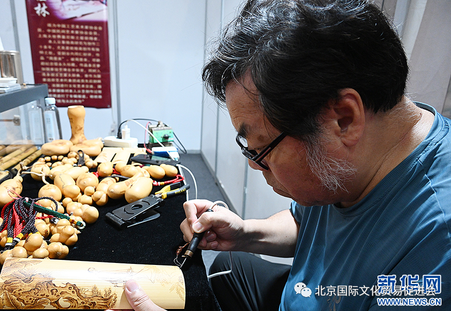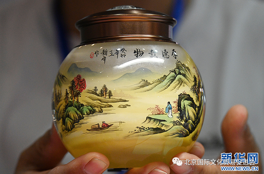 9月9日,来自天津的工艺师展示国家级非遗内画壶。