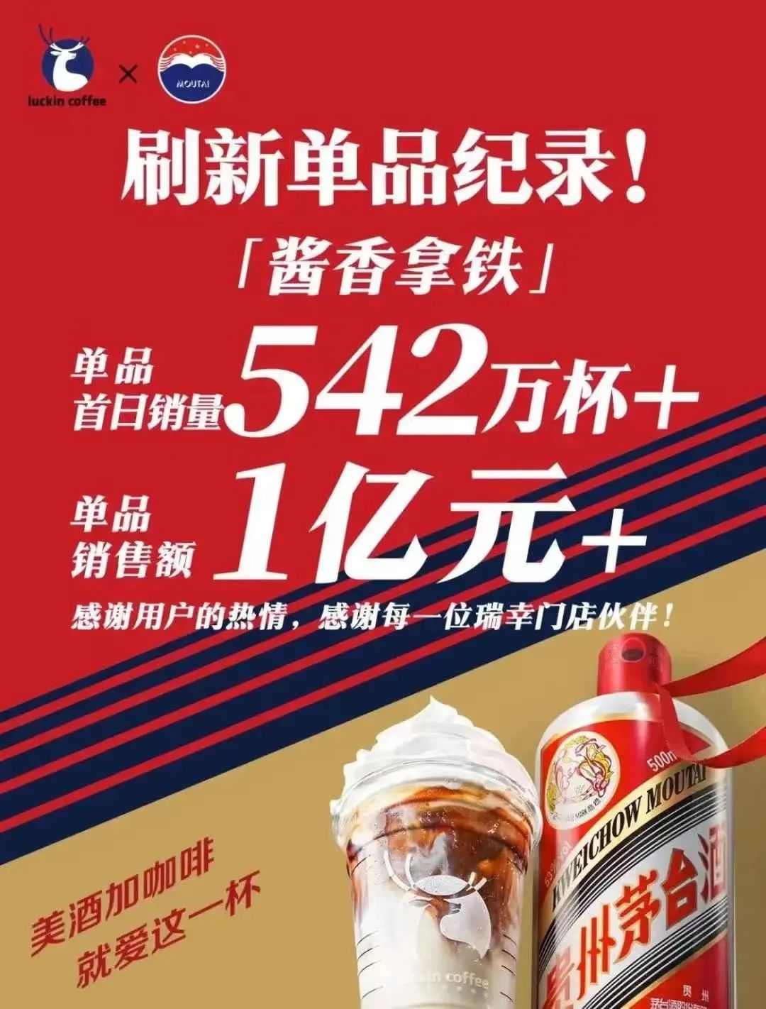 瑞幸被茅台宠幸了一下,就直接首日销量542杯+,单品销售额超过1亿元。