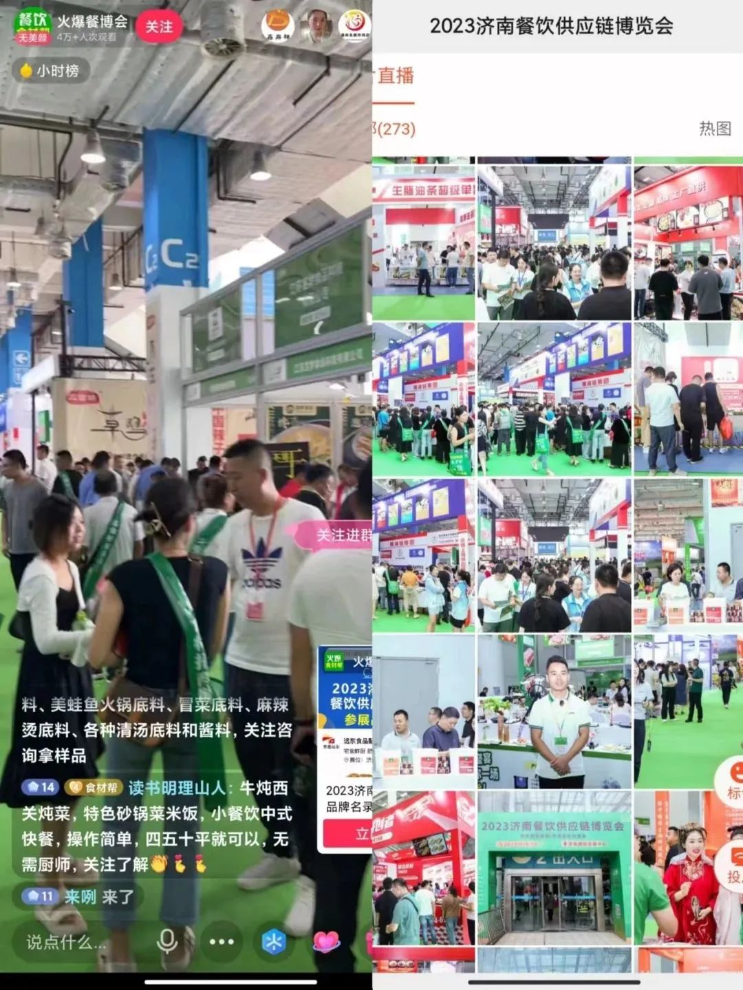 “食”逢其时,引领“味”来!济南餐博会跟随流量时代的潮流,聚焦线上开展线上短视频宣传曝光,直播品牌引流。短视频达人到场直播助力,展会三天,视频直播曝光量超100万+,与线上观众分享产品,互动解答,直击展会盛况。更有许多品牌方直接进入直播间,评论留言打卡,打破了空间距离,实现线上长期引流曝光与多元方式商贸对接。得到了参展商及线上观众认可与满意。