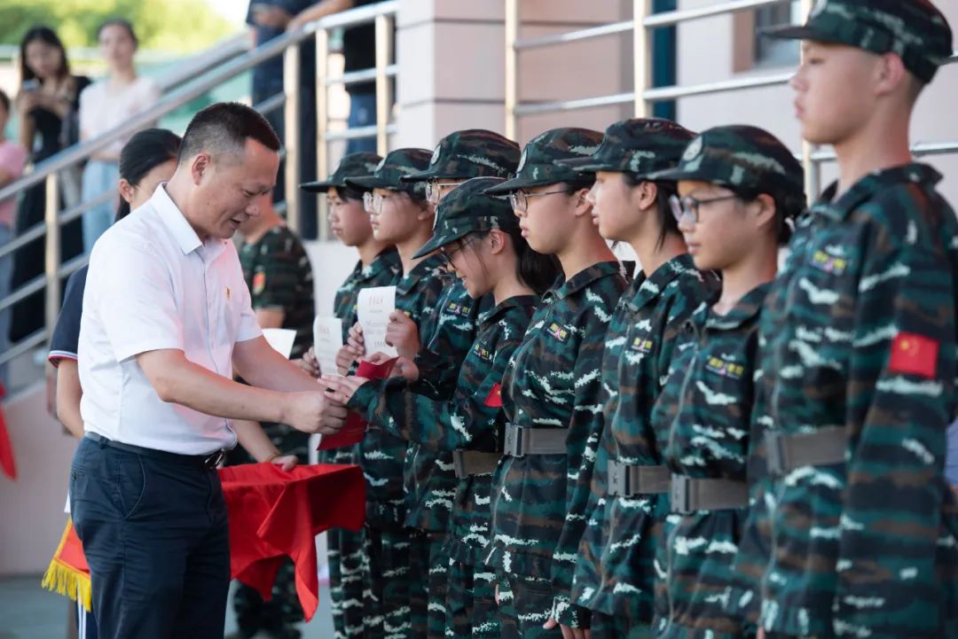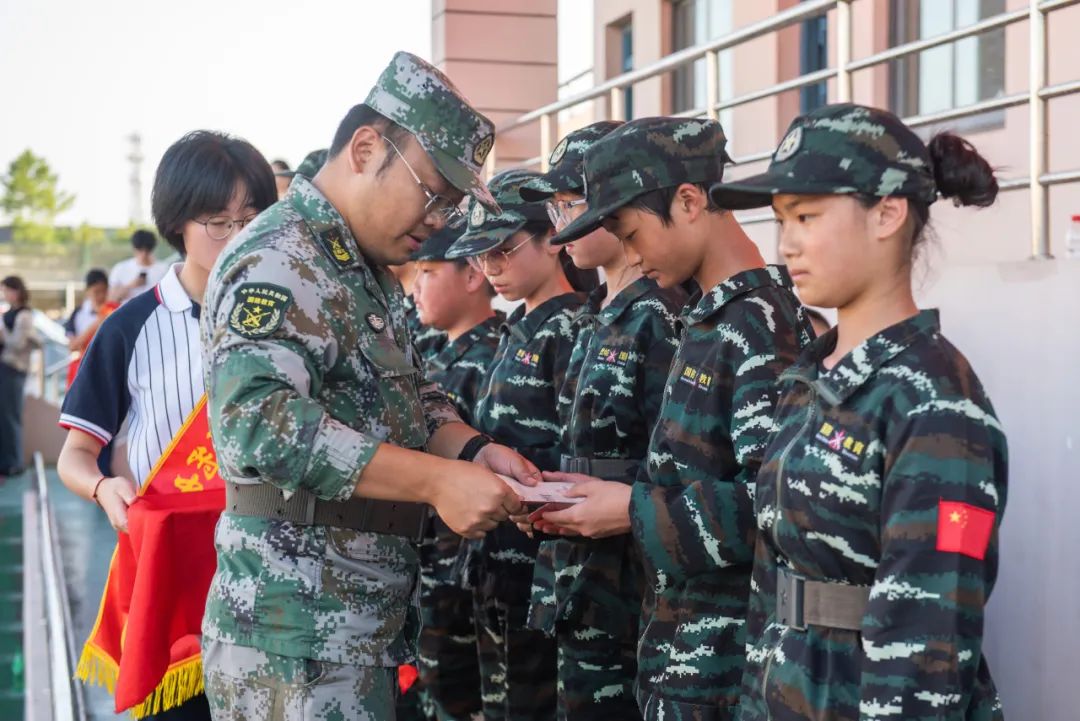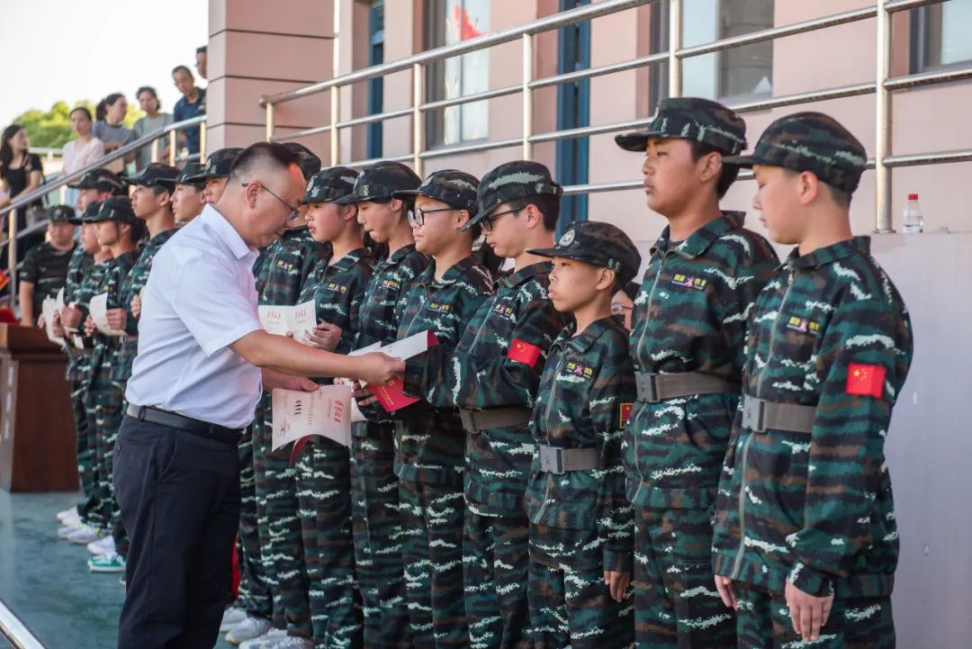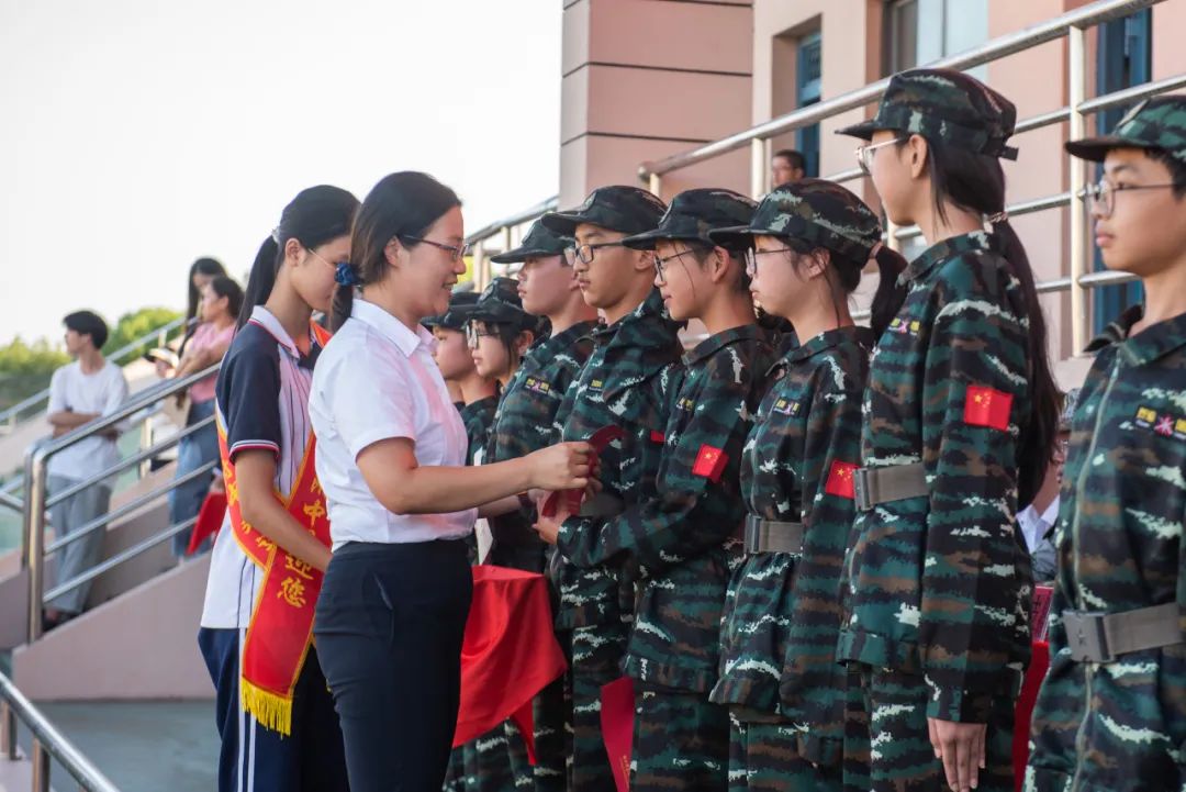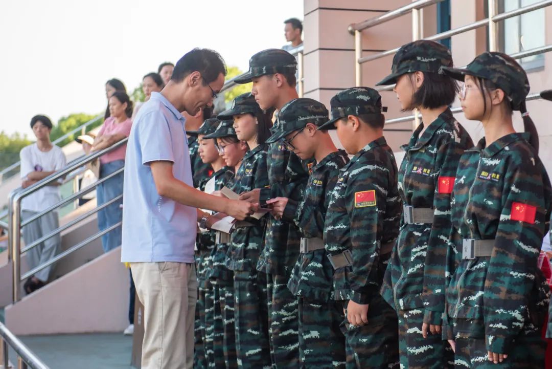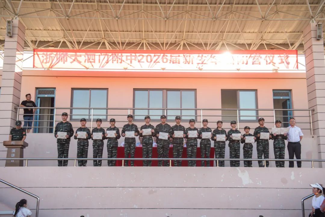 沙场点兵正青春,一声号角起新程。历经5天的烈日风雨,同学们的军训生活迎来了尾声。9月8日下午浙江师范大学附属泗门实验中学2026届新生军训汇报表演暨表彰大会在学校操场隆重举行。李凌云校长、邵晓炯副书记、方红敏副校长、诸国生副校长、校长助理杨波、学兵连军训团长郑思成、各学兵连军训教官、全体七年级新生及部分家长代表参加了本次活动。
