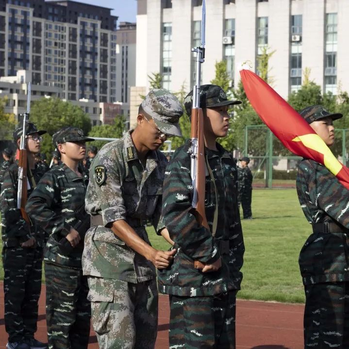 军训副团长向李凌云校长汇报之后,校长宣布闭幕式正式开始,至此军训成果汇演拉开序幕。