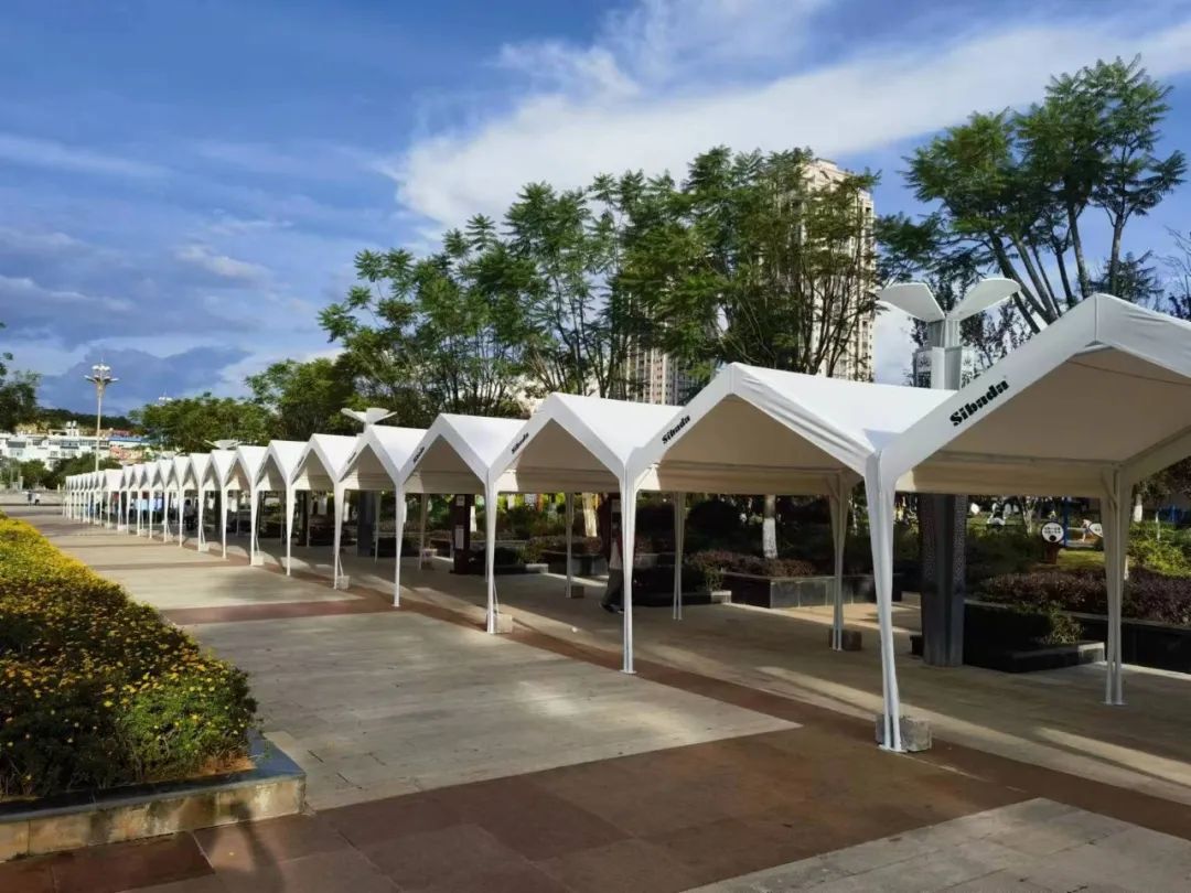 建材装饰展区和婚庆展区和月饼展区由3mX6m的网红帐篷搭建,每个展位收费5000元。