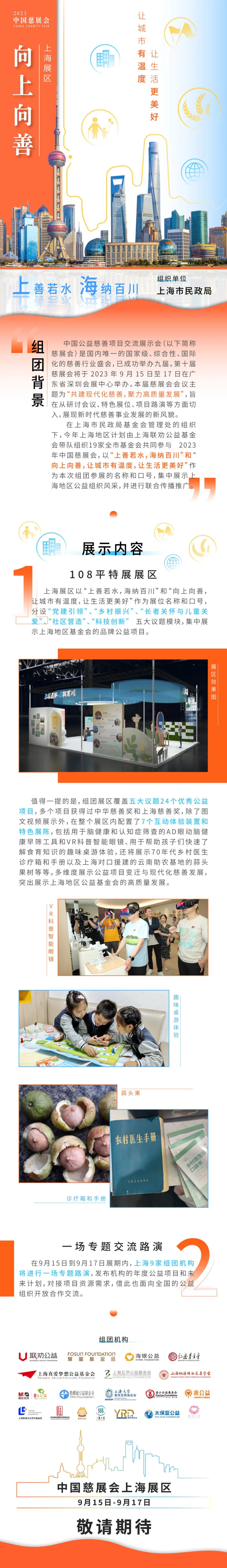 按照《民政部办公厅关于组织参加第十届中国公益慈善项目交流展示会的通知》要求,善小公益基金会将携手上海18家公益慈善组织参加第十届中国公益慈善项目交流展示会。本次参团特展通过展示交流、项目路演、参观访问、会议研讨等公益行动,能够更好地聚合区域公益慈善的品牌效力,增益公益慈善项目的传播成效,促进公益慈善资源供需对接,传播公益慈善文化,助力慈善生态协同发展。