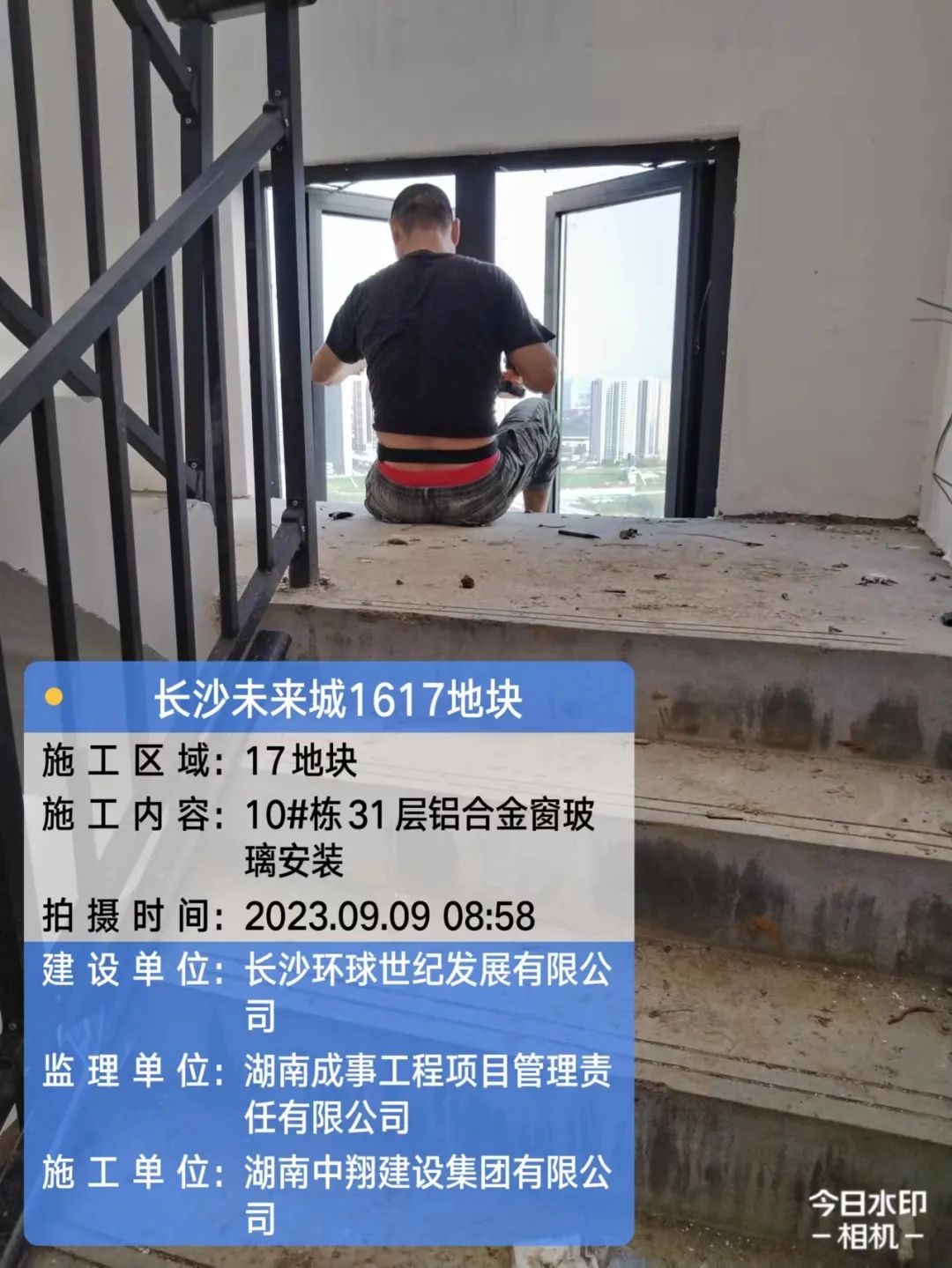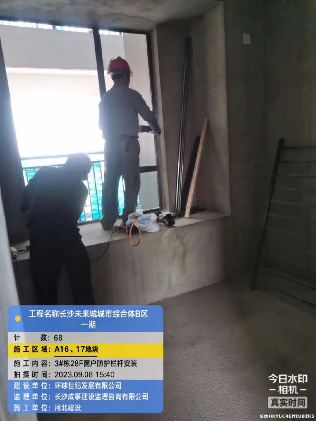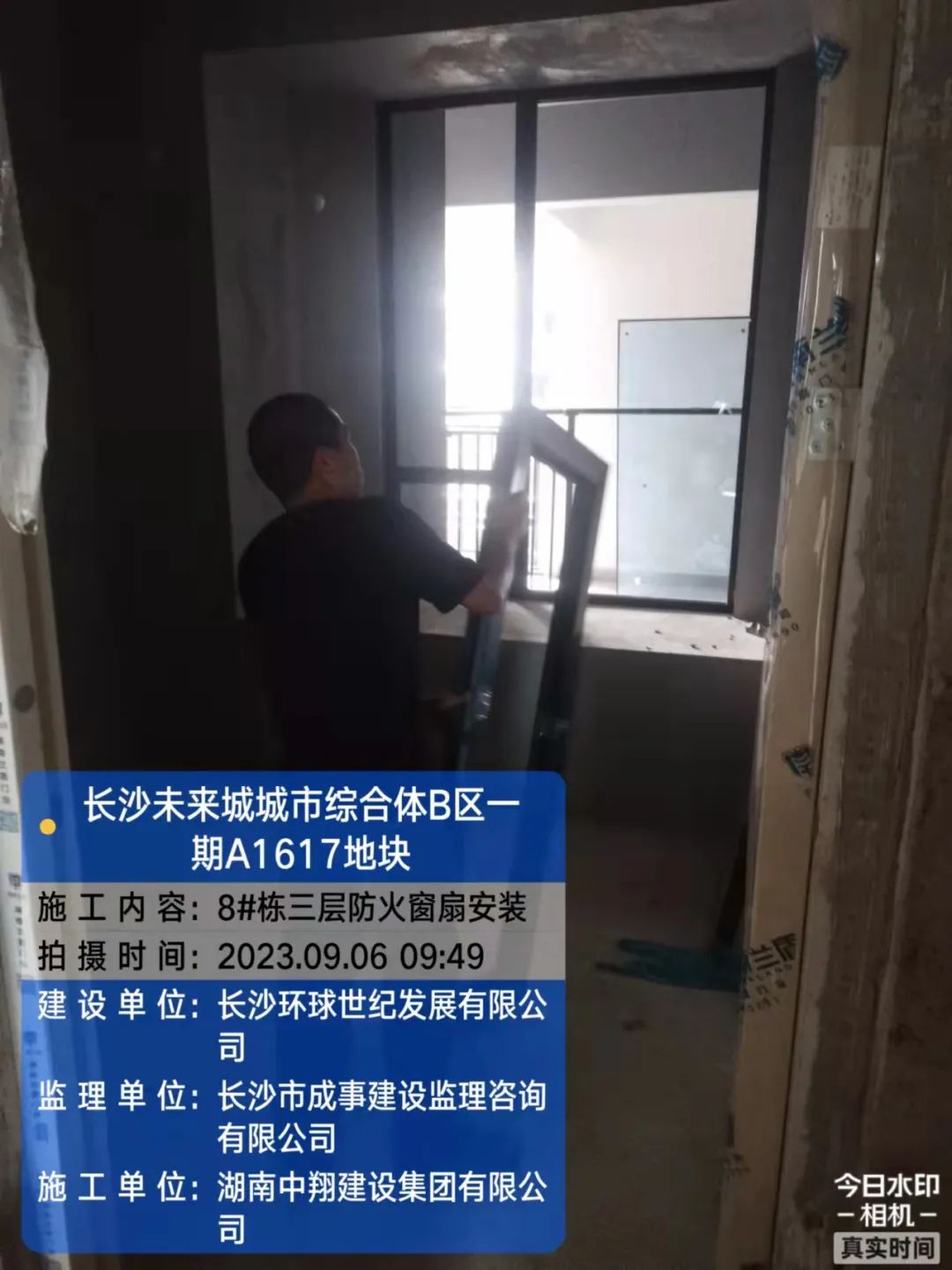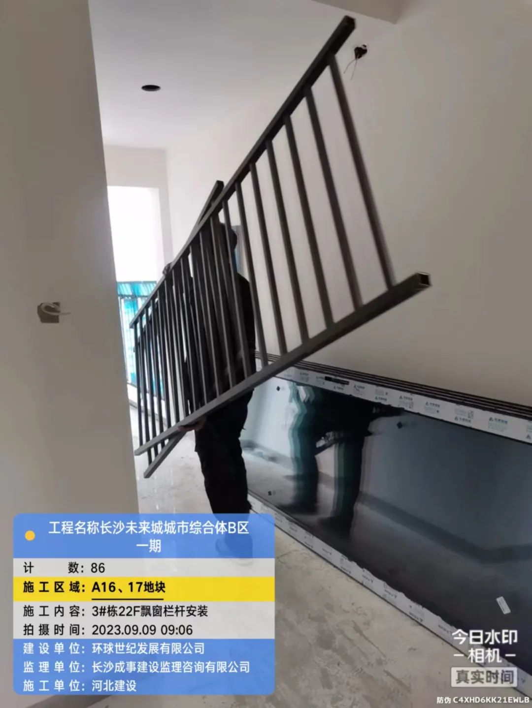 10#栋、11#栋、12#栋栏杆、铝合金门窗、防火门施工。