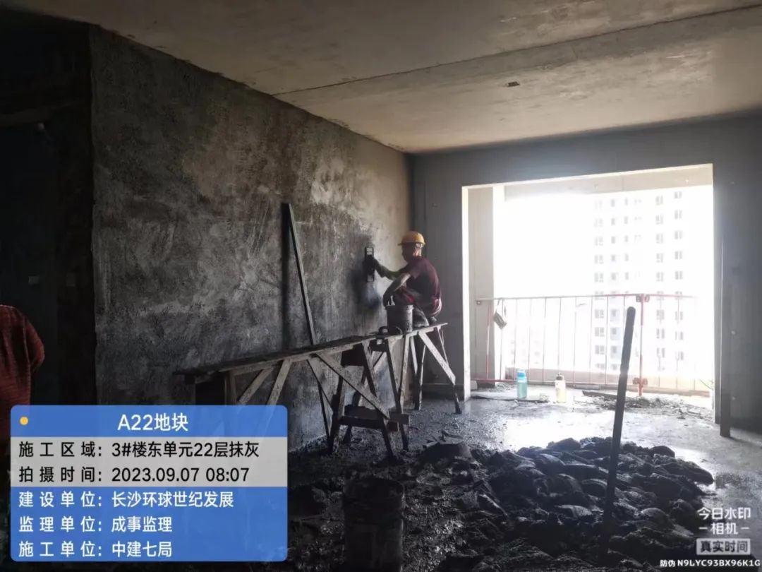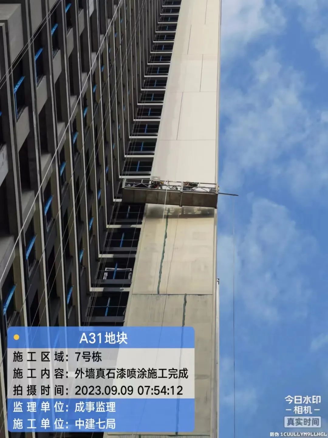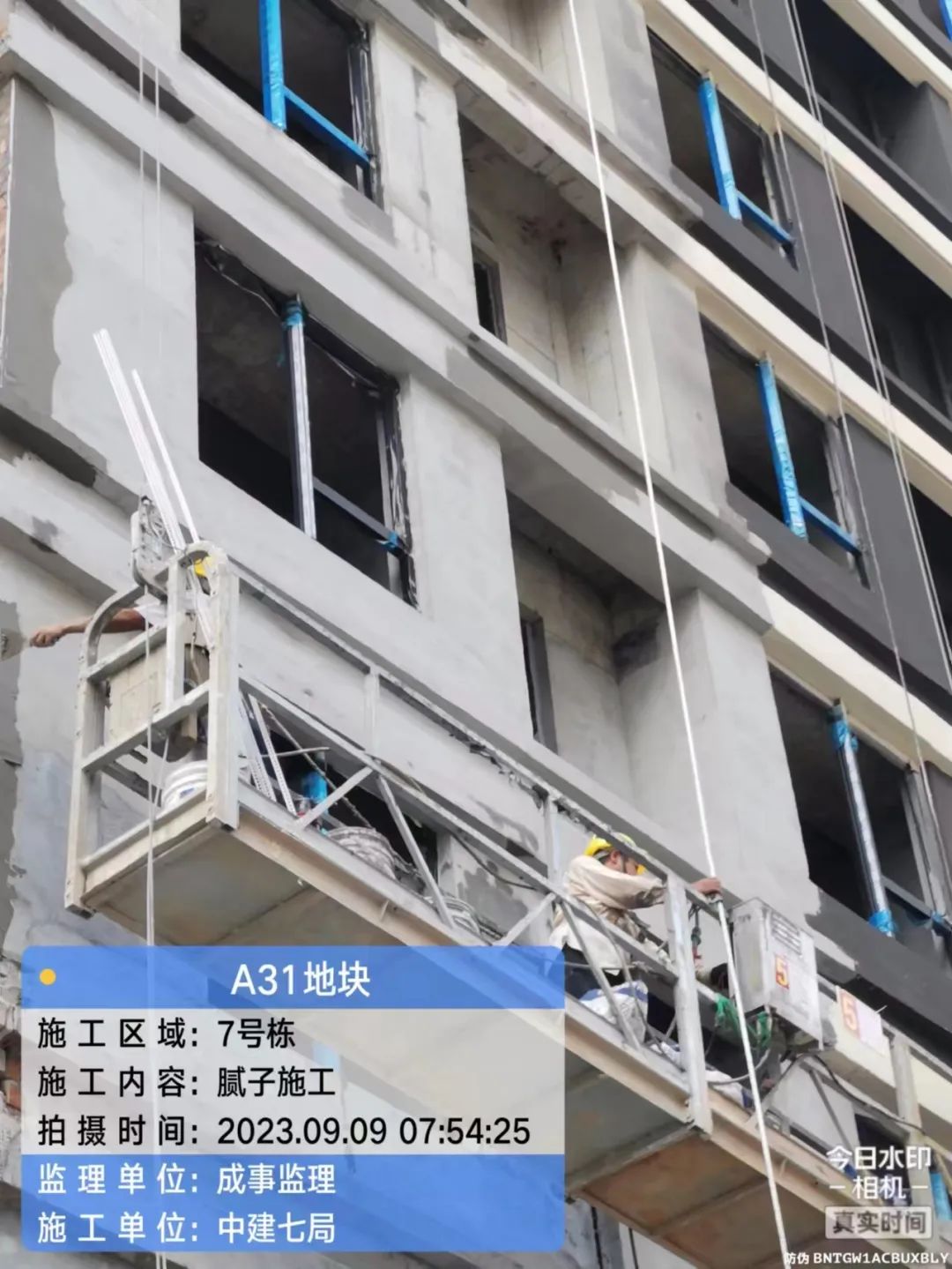 主体结构完成100%;二次结构完成88%;外墙涂料完成17%,铝合金门窗整体完成69%;水电安装完成70%;公区精装完成15%,地下室工程完成68%。