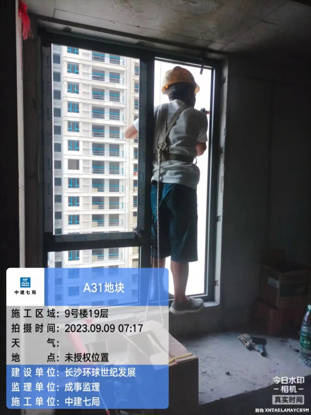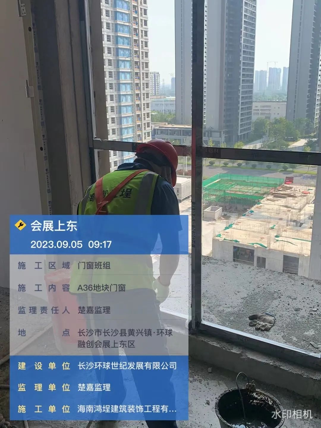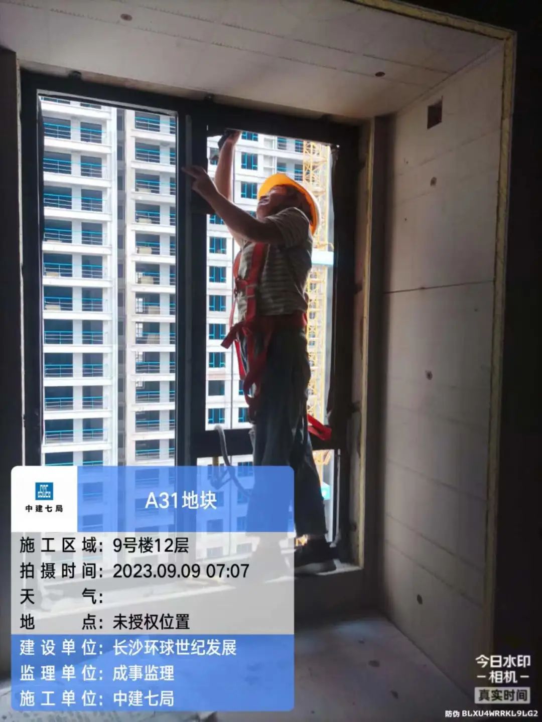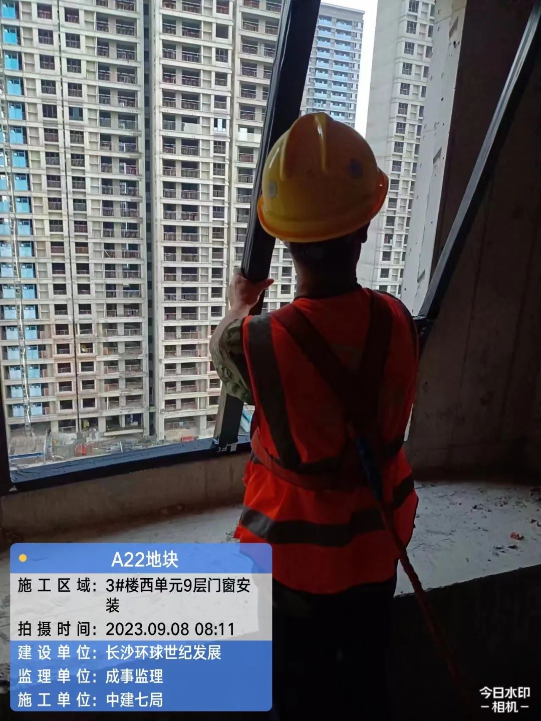 5#、7#、9#栋外窗框及阳台栏杆安装、塞缝;推拉门框安装。