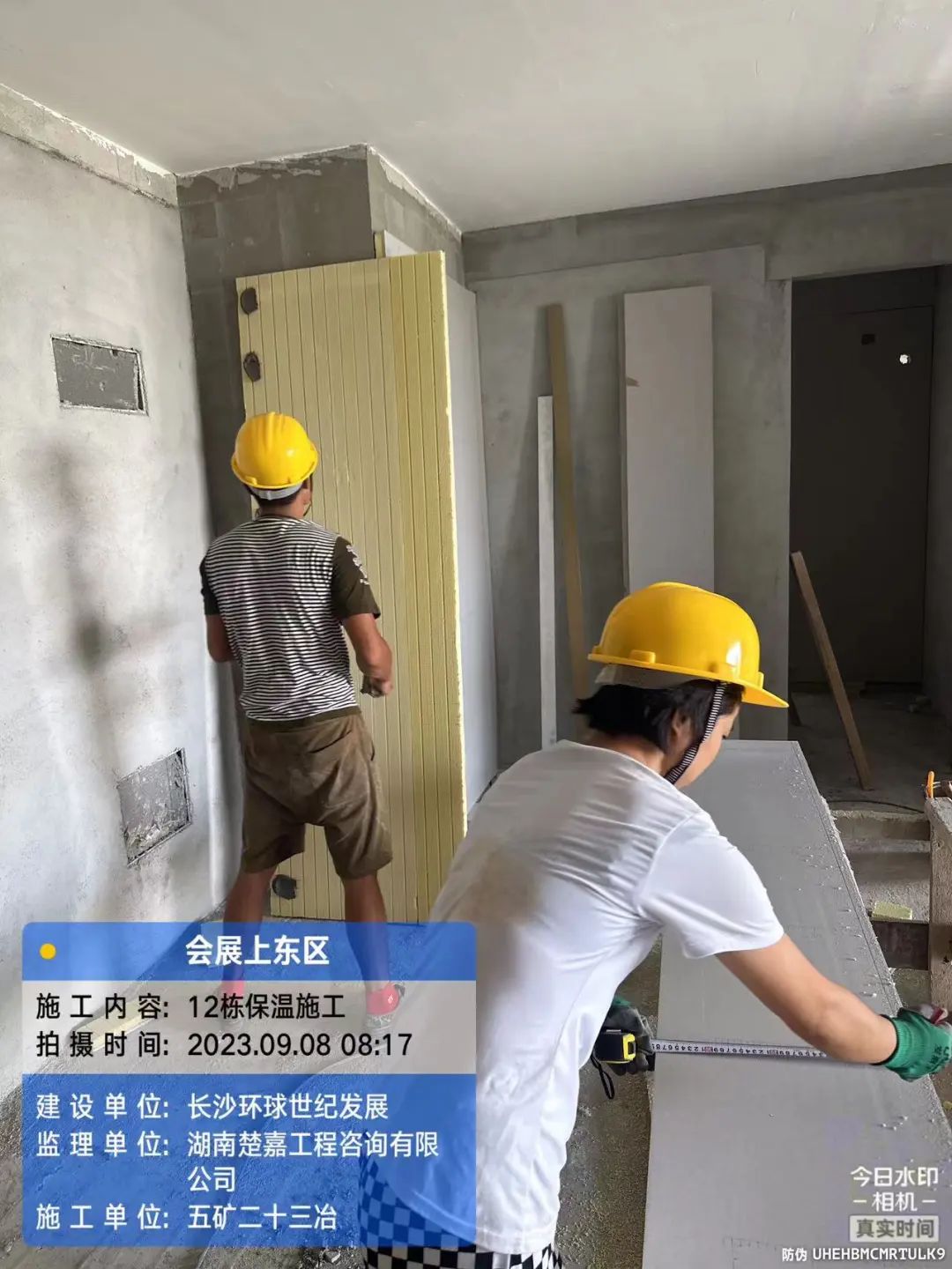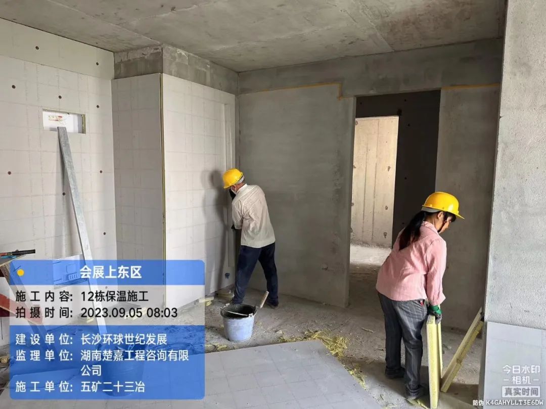 12栋屋面隔热层施工、13栋、14栋、15、16栋保温、楼梯间腻子、卫生间、阳台、楼梯间找平施工。