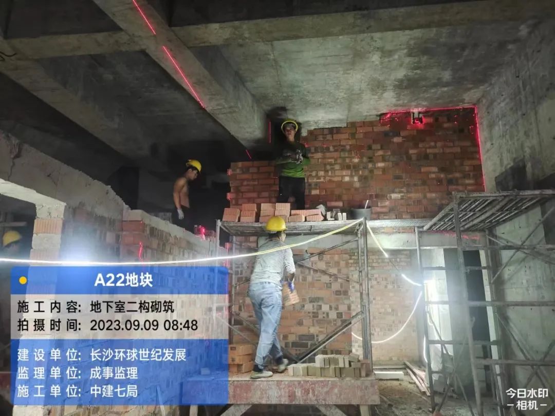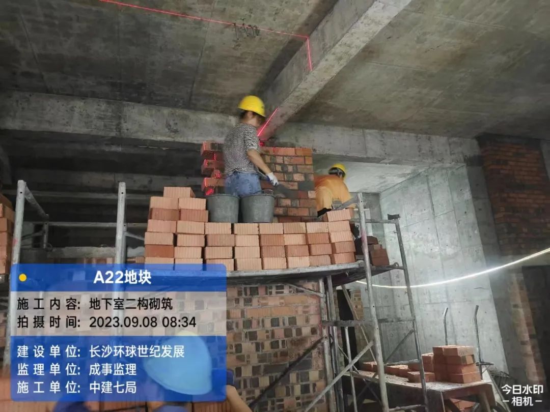 主体结构完成98%、二次结构完成57%、水电安装完成38%、地下室工程完成15%,栏杆完成12%、门窗完成25%、消防完成3%。