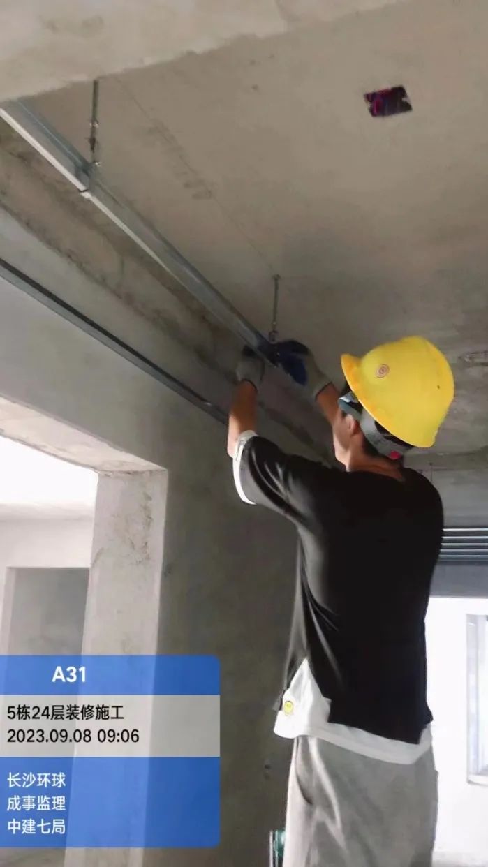 5#、7#、9#栋公区精装电梯层面封闭及吊杆安装。