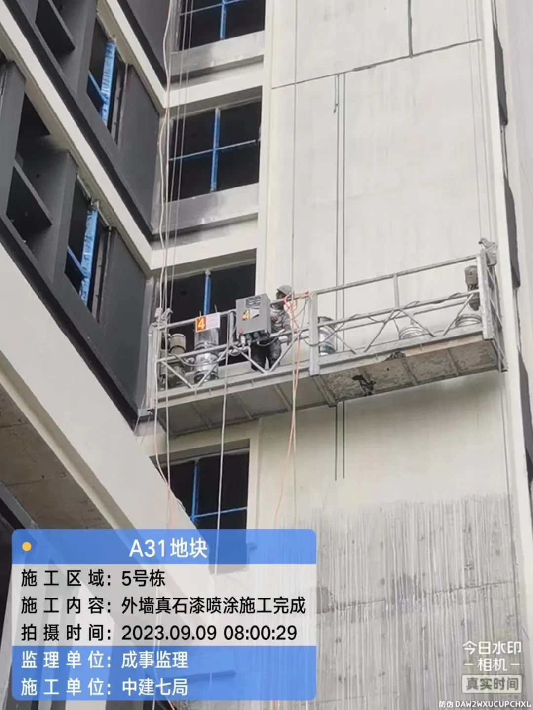 外墙吊篮施工方案总包用印流程审批中,外墙单位已进场施工;公区精装、园林绿化目前现场尚未达到施工条件,暂未进场施工。