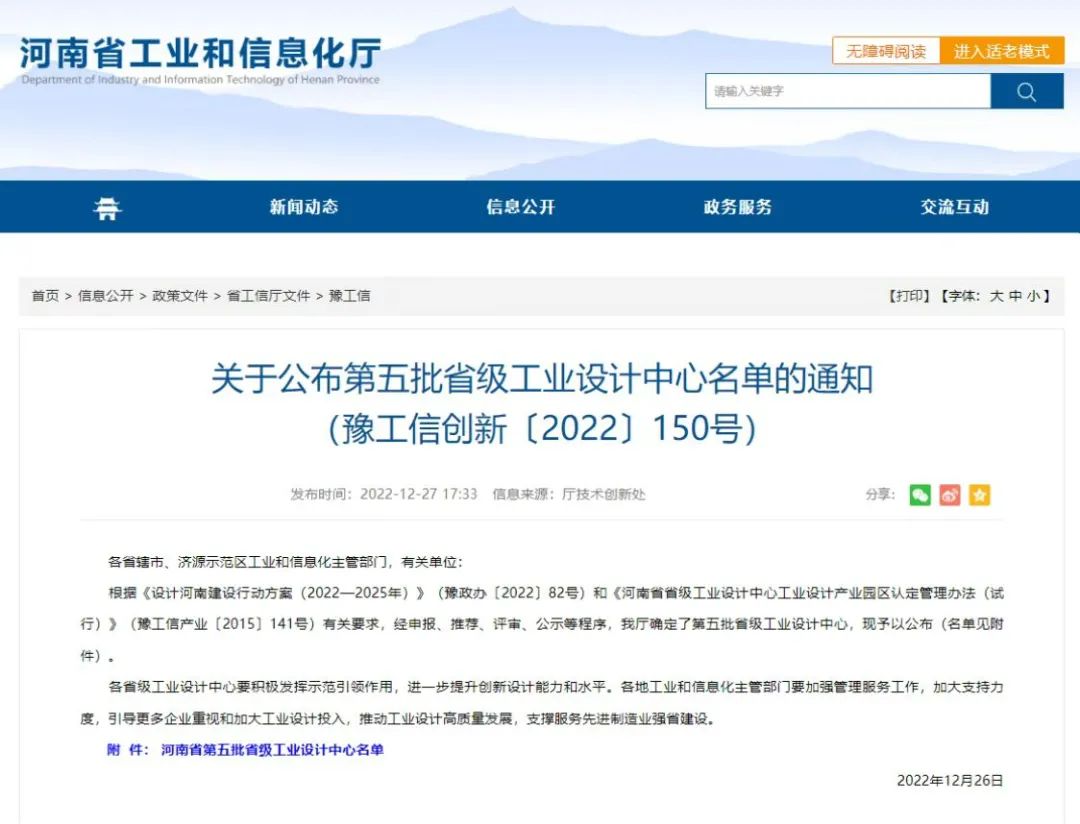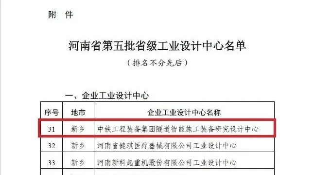 喜报!中铁装备集团设备公司顺利入选河南省工业设计中心