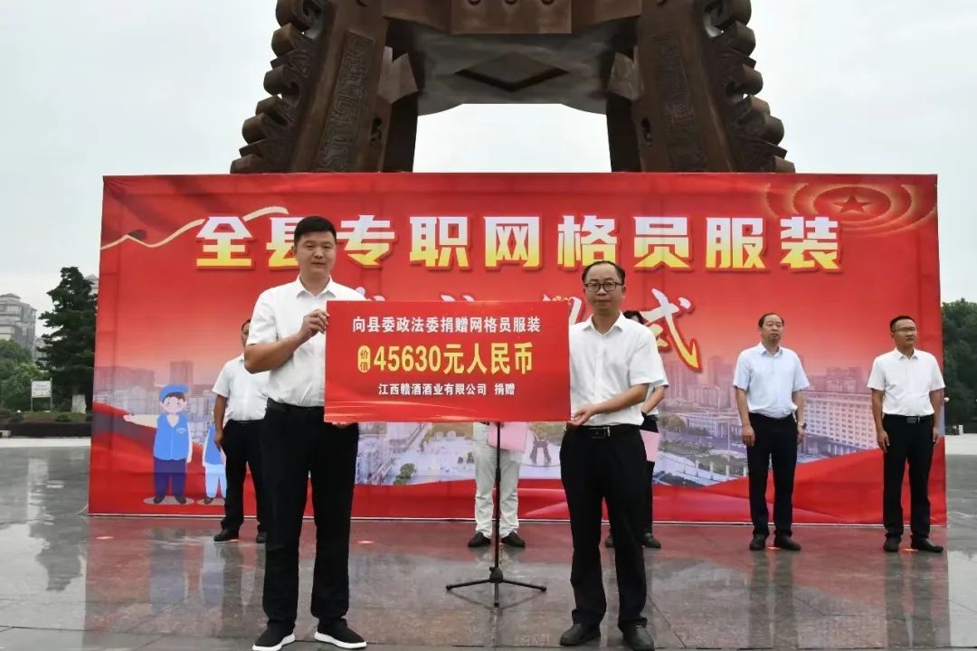 赣酒酒业代表表示:“为社会贡献一份绵薄之力,我们感觉义不容辞、责无旁贷,也呼吁全县企业家们,一起参与到社会公益事业中来,为我县经济发展、社会公益事业发展、文明城市创建、社会治理贡献自己的一份力量。希望各位网格员在各自的工作岗位上发光发热,贡献智慧力量,书写属于你们的荣光。”