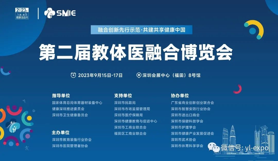 第二届教体医融合博览会由深圳市卫生健康委员会、国家体育总局体育器材装备中心指导,由深圳市医院管理者协会和深圳教育装备行业协会联合主办,是《深圳经济特区健康条例》里“深圳健康活动月”的组成部分,是一项展会民生工程。有来自全市的20多家公立医院组团亮相,近20位医院院长担任演讲嘉宾,共筑院长论坛重磅阵容,同时举办护理论坛、体育论坛、心理健康论坛、市民健康大讲堂等主题论坛,组织义诊活动,开展武术、瑜伽等体育健身项目展演,全面展示教体医融合、医养、体育、教育、医疗设备、营养、金融、康护、科技等九大板块的健康产业链新技术、新装备,集中展示深圳公立医院高质量发展风采,一场具有创新色彩、高端阵容和民生温度的全民盛会,即将于9月15—17日在深圳会展中心8号馆举办,期待您的到来。