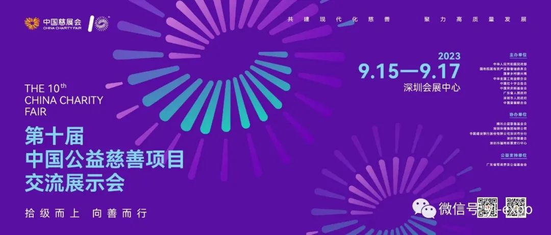 第十届中国公益慈善项目交流展示会(简称“中国慈展会”)将围绕“共建现代化慈善,聚力高质量发展”的主题,于2023年9月15日-17日在深圳会展中心1/2号馆举办举行。