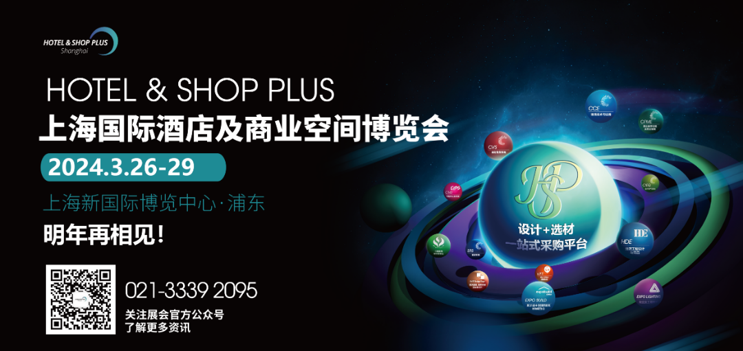 Hotel & Shop Plus上海国际酒店工程设计与用品博览会已在酒店及商业空间领域深耕30余载,旨在打造酒店、商业空间筹建与运营的一站式采购平台。2024年将于3月26-29日上海新国际博览中心 • 浦东举办,将持续打造高质量、高水平的酒店及商业空间建设与运营采购盛会。展会由中国旅游饭店业协会、中国百货商业协会、中国照明电器协会、住房和城乡建设部 • 中国建筑文化中心、中国食品土畜进出口商会、上海博华国际展览有限公司联合主办。现场将汇聚卫浴/泳池/桑拿,墙/地面材料、户外设计、室内设计、智慧酒店、照明灯饰、智能控制系统、酒店用品综合、智慧办公、商业空间、商业设计等酒店及商业空间筹建与运营领域各类品牌展商。期待3月与您相约上海新国际博览中心 • 浦东!不见不散!