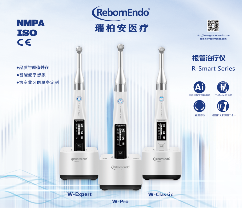 公司自成立以来一直坚持以客户为本、产品领先的发展理念,为牙科医生提供优质的产品和完美的解决方案。公司搭建了一支年轻、充满生机活力的团队,具备高标准的牙科口腔医疗器械研发、设计和生产线,拥有完整的口腔牙科根管一站式解决方案。主要产品包括根管治疗仪、根管长度测量仪、根管预备机、光固化机、根管荡洗器、根管锉针等。公司产品同时获得国际质量体系ISO认证、中国食品药品监督管理局NMPA认证、CE认证。公司产品远销海内外30多个国家和地区,获得客户的一致认可和好评。