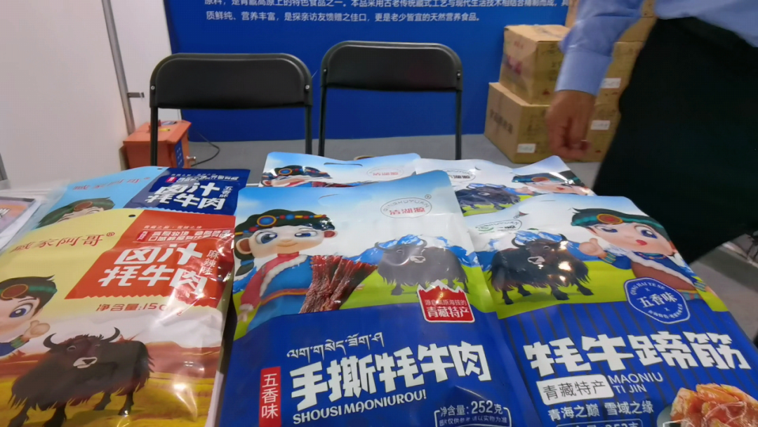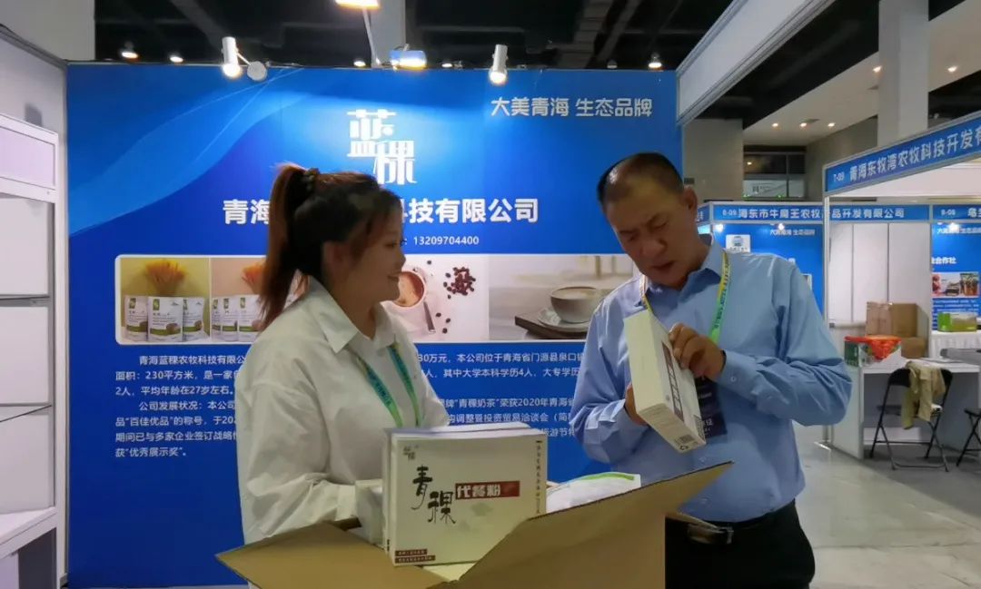 海北州青海金门牛食品开发有限公司、门源县慧通香宝特种养殖专业合作社、青海蓝稞农牧科技有限公司、金祁连乳液有限责任公司、祁连亿达畜产肉食品有限责任公司、刚察县成海油菜加工专业合作社、刚察隆达农牧产品经营加工有限责任公司、海北清湖源生物科技开发有限公司8家企业在“大美青海·生态品牌”主题馆设展位参加,参展产品为麝香仁、麝香酒、蓝稞咖啡、青稞代餐粉、牛奶、酸奶、小菜籽油、藏羊、牦牛肉等系列海北特色食品和酒水产品共39种,价值8.27万元,各企业负责人对产品特色、功效等方面逐一进行了介绍,吸引诸多参会者驻足。