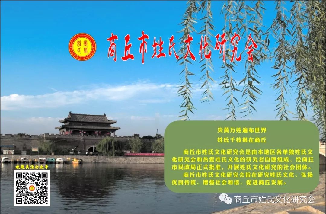 欢迎关注商丘市姓氏文化研究会公众号,如果您有姓氏文化相关的稿件及资料,欢迎和我们联系。来稿电子文档请发邮箱sqxs2019@sina.com,来稿若为纸质文档,请与商丘市姓氏文化研究会副秘书长张旭联系接收,电话:18238025861(微信同号)