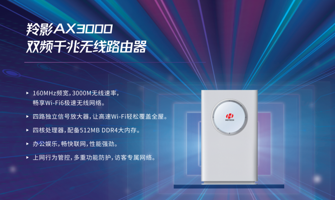 160MHz频宽,3000M无线速率,畅享Wi-Fi6极速无线网络。