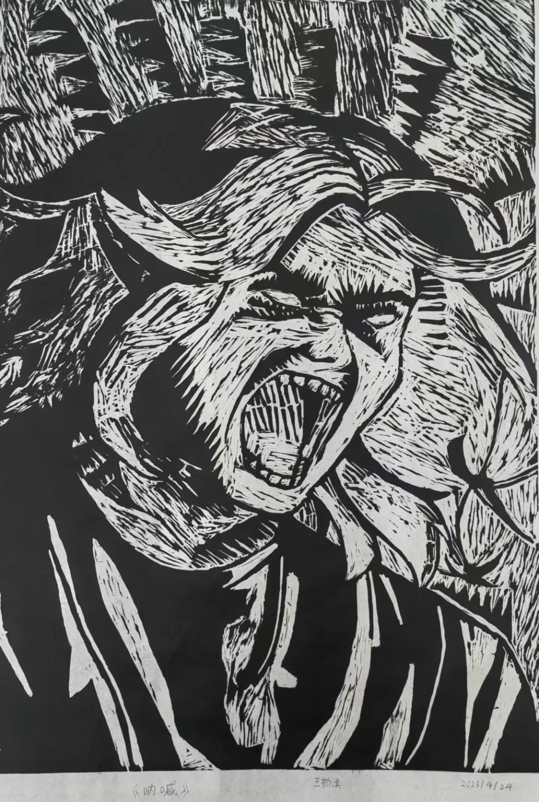 版画创作画面具有独一无二的力量感,而这种力量感是鲁迅先生借以唤醒国人灵魂的利器。新兴版画运动距今已经过去九十余年,但其影响力一直随着时代发展而增强,本次展览作品的创作者即为中学生。展览共展出上海中学国际部学生作品30余件,作品分3个系列:鲁迅先生像系列;中外神话系列,其中包含了鲁迅小说相关内容;自画像系列的版画创作。鲁迅像的创作,表达了当代中学生对鲁迅先生和鲁迅精神的怀念与传承;中外神话的创作给予学生想象力上的发挥,同时也是对于传统文化的传承;自画像系列则是更加注重学生的创作性,把自己的表现能力通过刻画的每一道痕迹描绘出来。