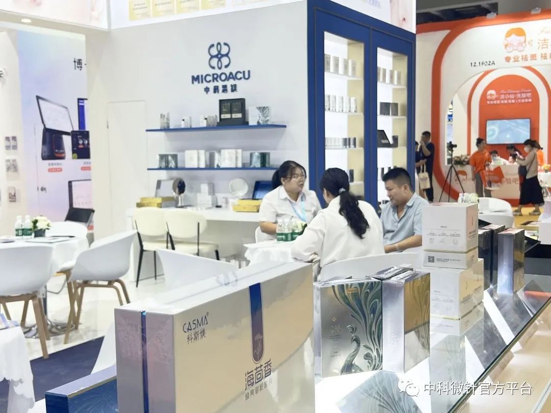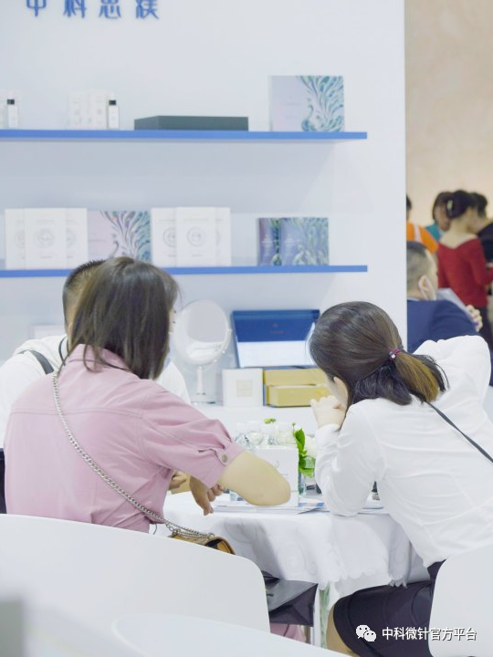 在众多展商中,中科微针旗下自主品牌中科思媄以其独特的品牌魅力和出色的产品功效成功闯入市场,获得广泛认可和青睐。作为一个致力于为消费者开发独立自主的微晶专利技术护肤产品的品牌,中科思媄此次参展,不仅展示了公司在功效性护肤品市场的实力和潜力,同时也又一次完成了品牌风采展示。