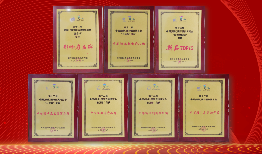 可以说酒博会是国内酒水行业最高规格、最具权威的行业盛会。本届酒博会,国吉祥从1600多家酒企中脱颖而出,收获颇丰:国吉祥荣获“影响力品牌”奖,国吉祥控股集团董事局主席王运万荣获“中国酒业影响力人物”奖,国吉祥G20荣获“新品TOP10”奖;国吉祥控股集团旗下云汉春品牌荣获“中国酒业杰出酱酒品牌”奖、“中国酒业潜力品牌”奖、“中国酒业创新案例”奖,云汉春·N20荣获“老百姓喜爱的产品”奖,为本届酒博会书写浓墨重彩的一笔。