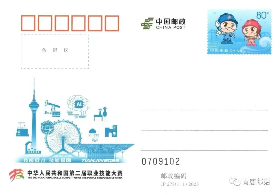 中国邮政定于2023年9月16日发行《中华人民共和国第二届职业技能大赛》纪念邮资明信片1套1枚。详情如下:
