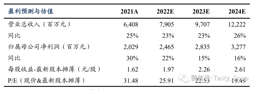 我们维持2022-2024年归母净利润为24.65、28.35、32.77亿元,同比分别增长22%、15%、16%,当前市值对应PE分别为26/23/19X,维持“买入”评级。