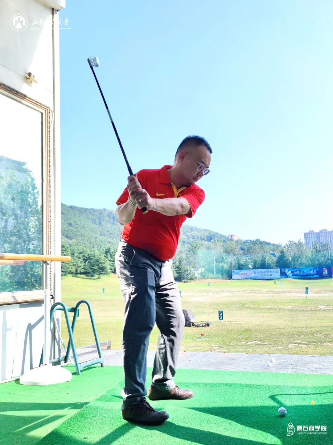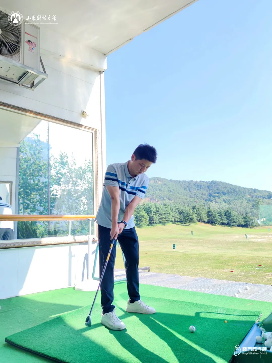 在山东财经大学青岛高尔夫球队成员、MBA青岛班二期班学员徐大松徐总的指导下,大家从基础动作开始学习,逐步掌握高尔夫球技。