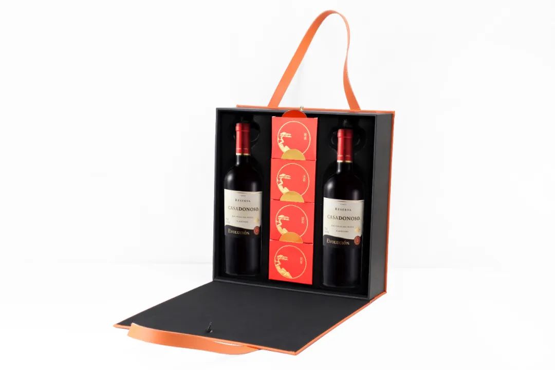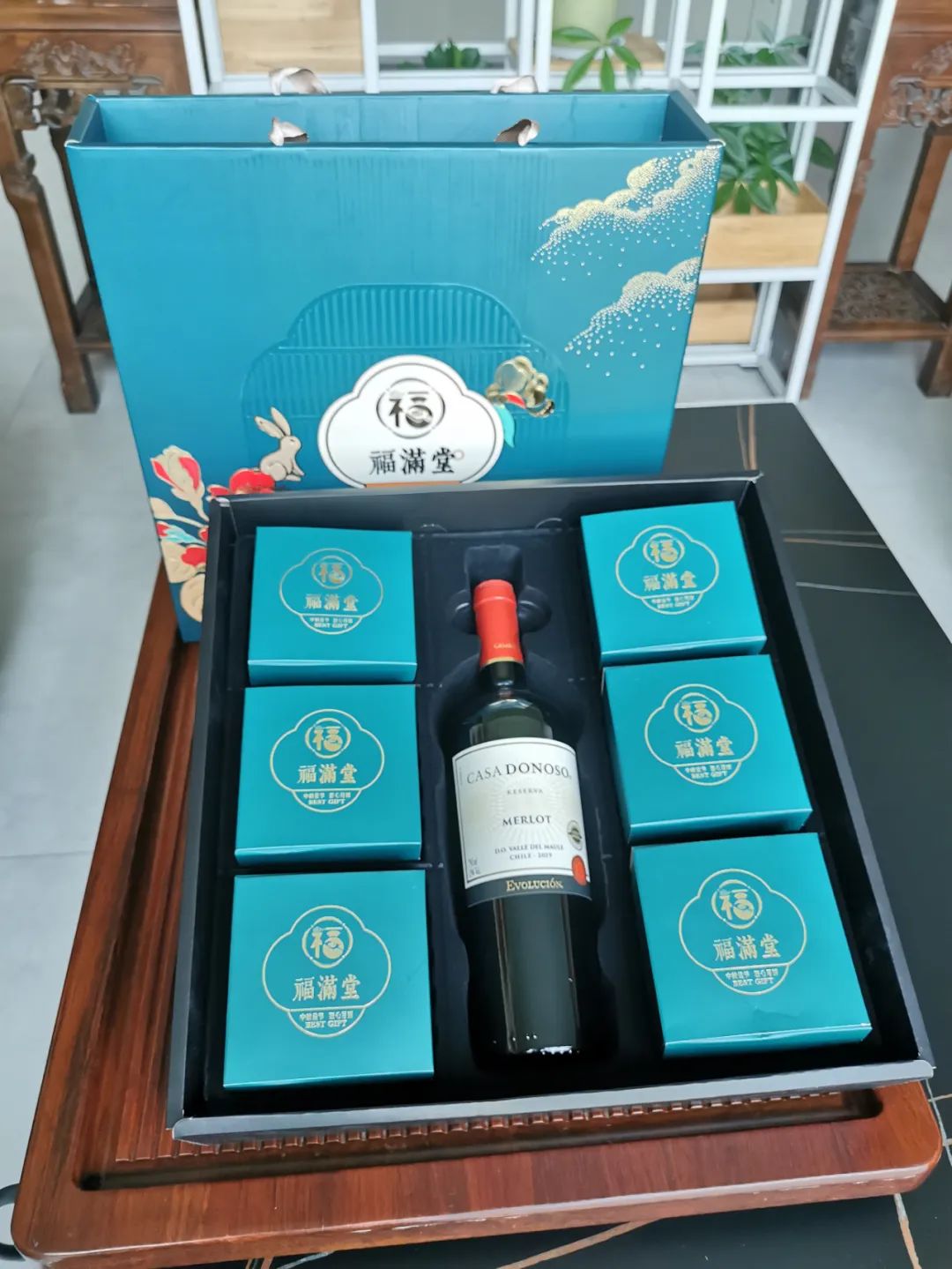 红酒月饼礼盒,与您共度中秋美好时光。祝您阖家欢乐,万事如意。