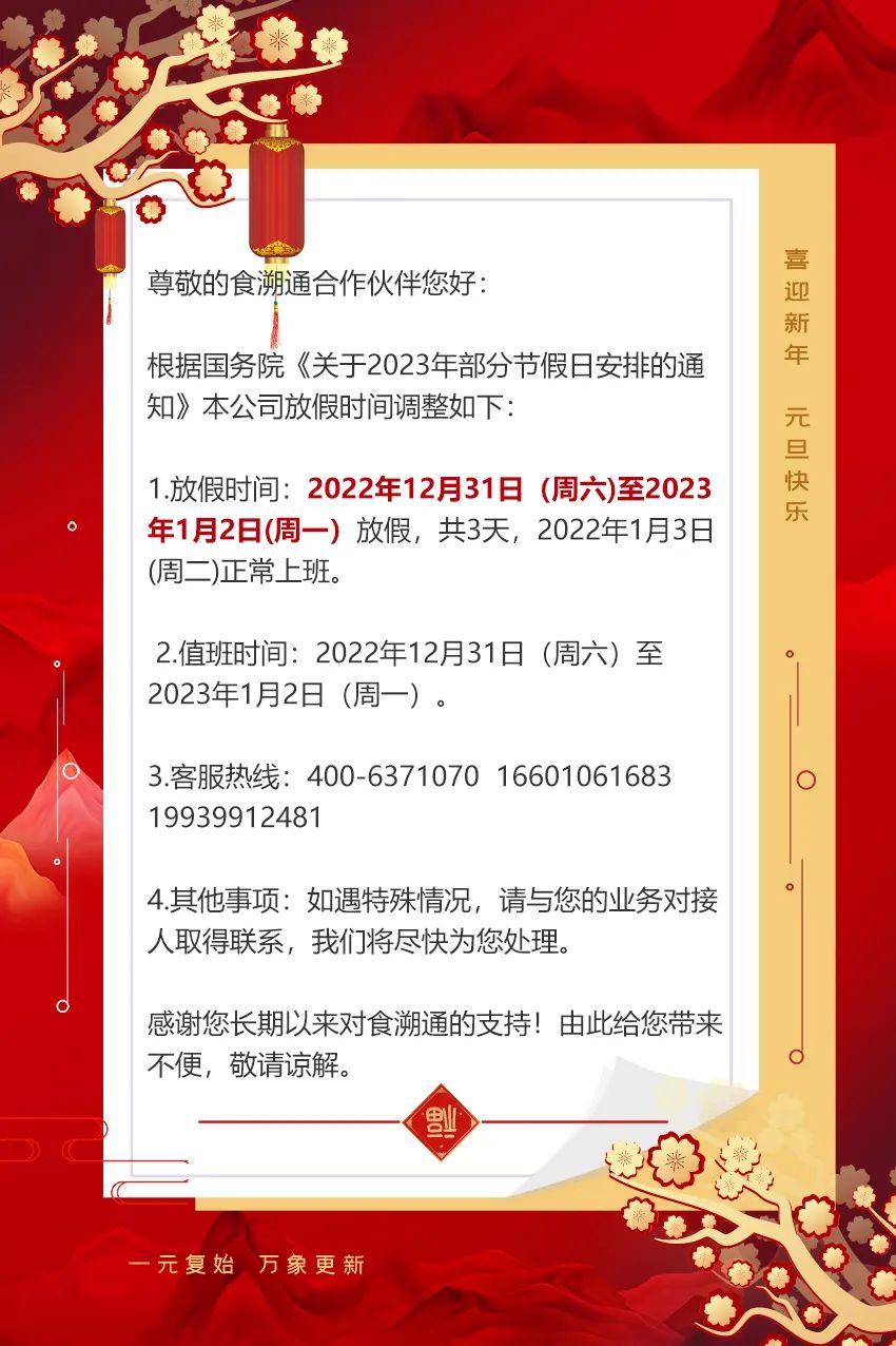 北京永杰友信科技有限公司食溯通产品部元旦节放假通知