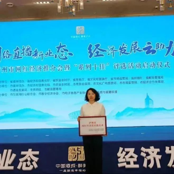 泸州市人大代表、泸州市委市政府决策咨询委员会委员、中国沈酒集团总经理沈连参加了推介会。中国沈酒集团凭借多年来深耕网红经济领域,并在抖音、京东等多种互联网领域发展迅猛,被市政府相关部门命名为首批“泸州市网红经济供应链企业”,并在推介会上被正式授牌。
