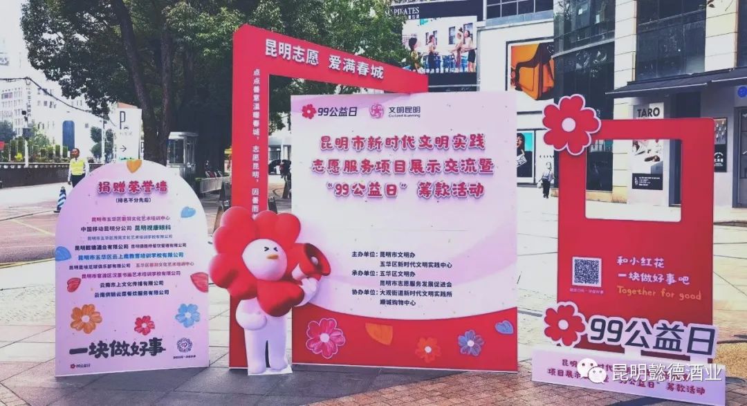为积极履行企业保护生态环境的社会责任,进一步提升个人绿色文明和环境保护的意识,弘扬保护环境正能量,昆明懿德酒业有限公司于2023年9月9日,在顺城购物中心参加了由昆明市文明办主办,昆明市志愿服务发展促进会发起,公募机构为云南省红十字会,筹备平台为腾讯公益基金会的保护滇池爱心义卖活动。