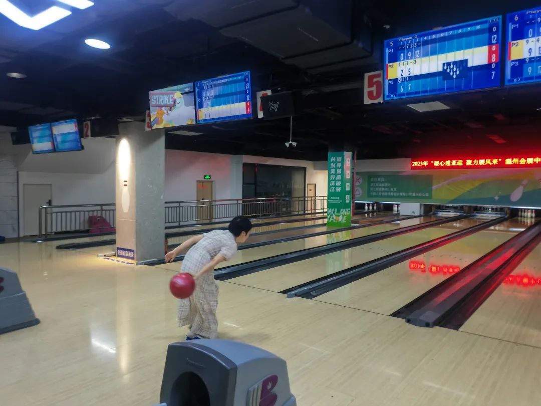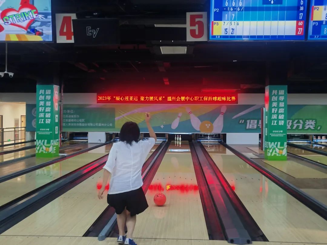 漂亮的滑步、潇洒地出手,伴随着一道精准的弧线,远端的球瓶应声而倒……9月7日,温州会展中心在杨府山公园佳鑫保龄球馆举办“凝心迎亚运 聚力展风采”职工保龄球趣味比赛正式“开赛”!