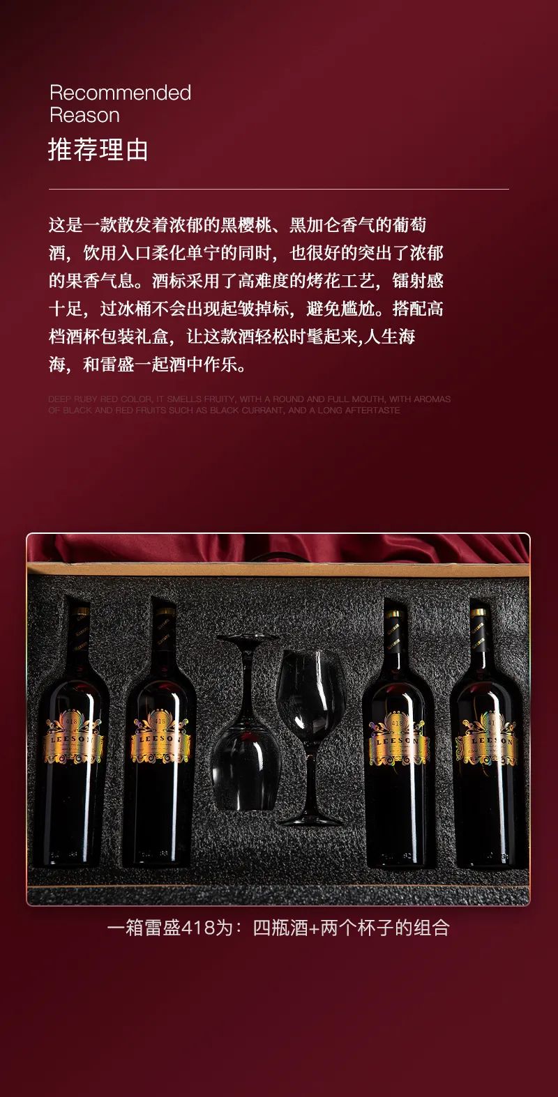 关注公众号商城即可购买雷盛红酒418智利礼盒装干红葡萄酒