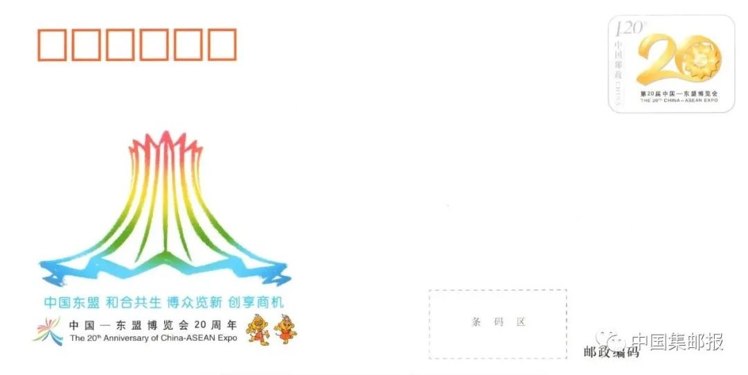 中国邮政定于2023年9月16日发行《中国—东盟博览会20周年》纪念邮资信封1套1枚。详情如下:
